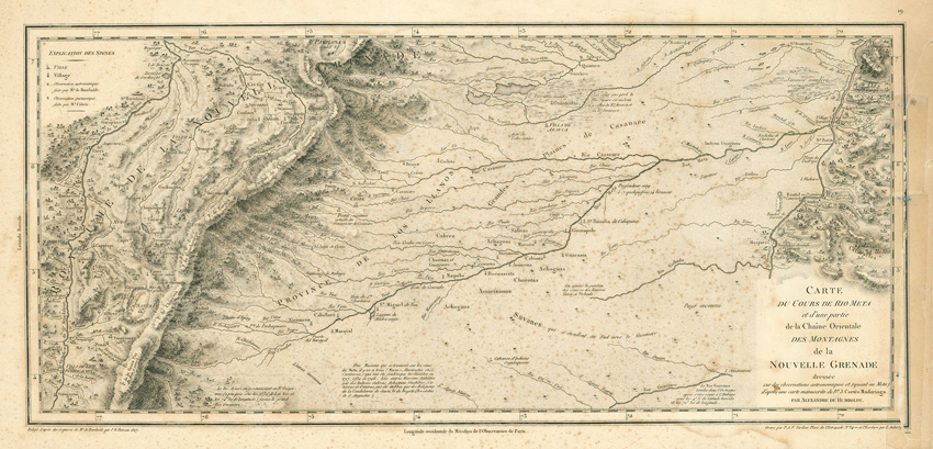 Carte du cours de Rio Meta et d'une partie de la Chaine Orientale des montagnes de la Nouvelle Grenade: dressé sur des observations astronomiques et (quant au Meta) d'aprés une carte manuscrite de Dn. J. Cortés Madariaga