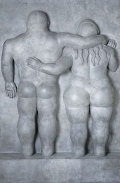Pareja. 1993. Relieve en mármol. Museo Botero del Banco de la República.