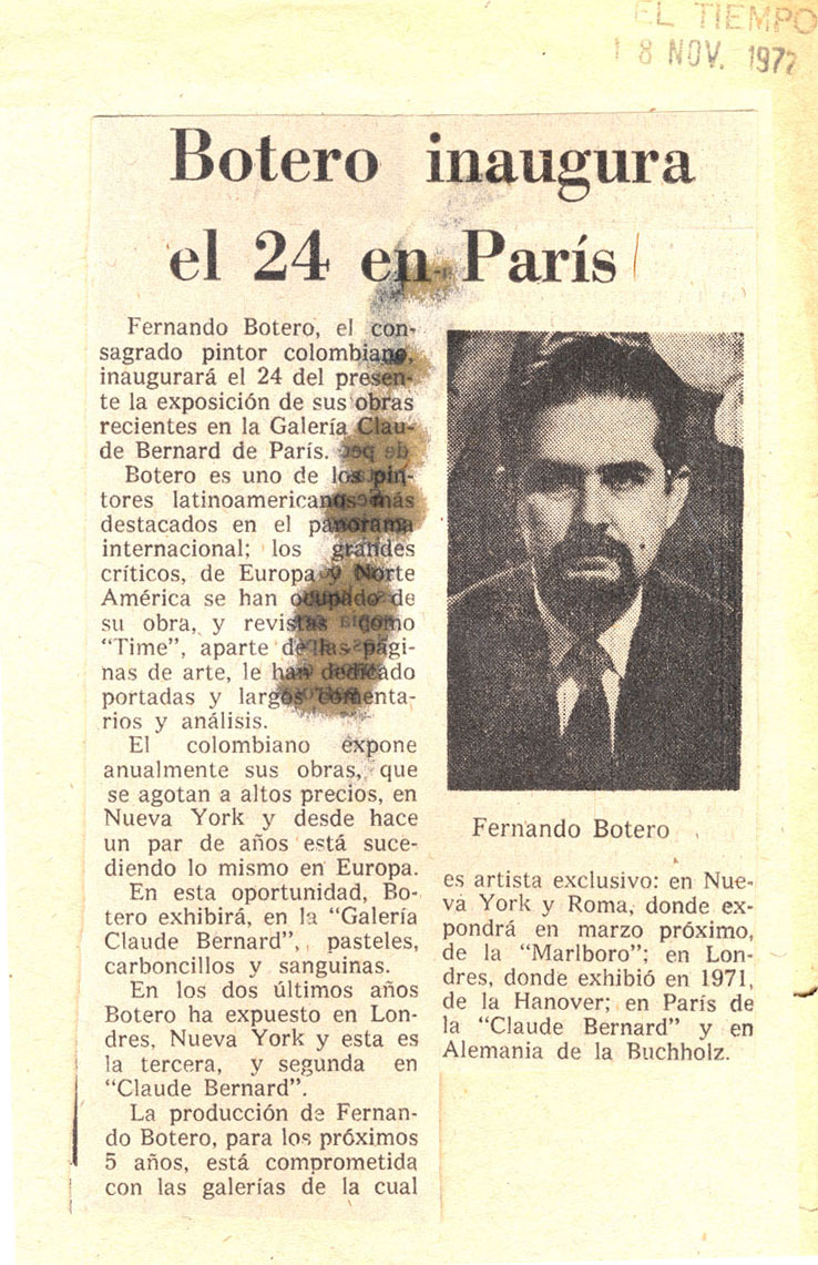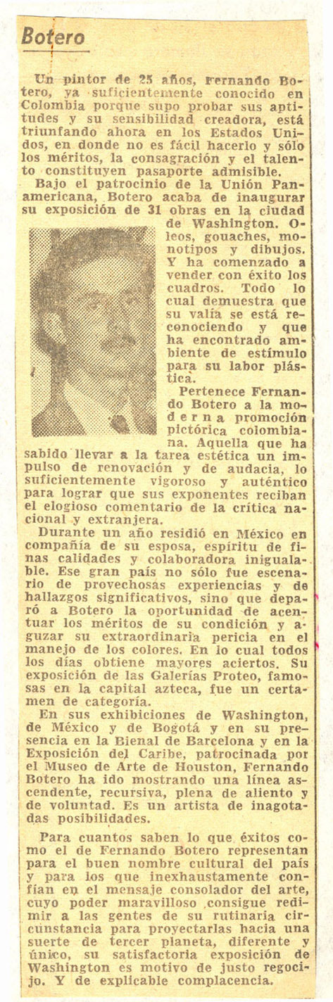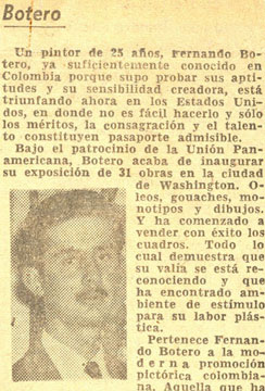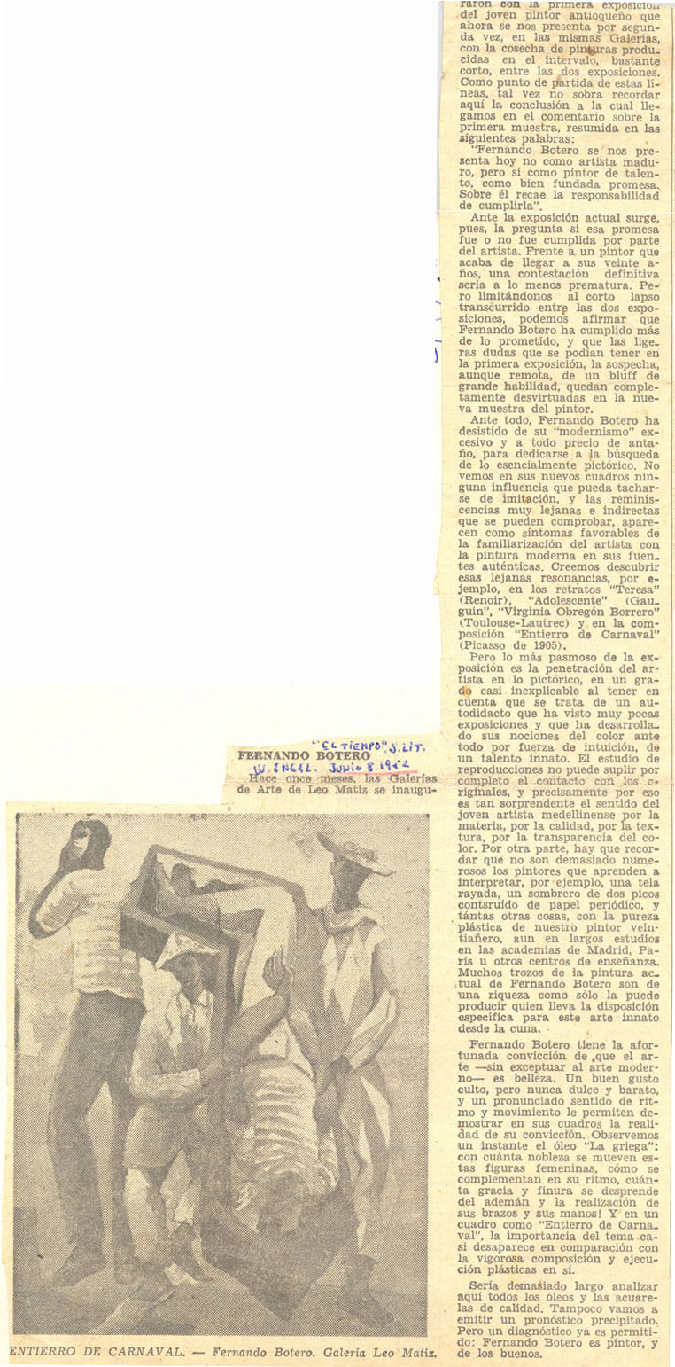 Fernando Botero. El Tiempo. Junio 8 de 1952.