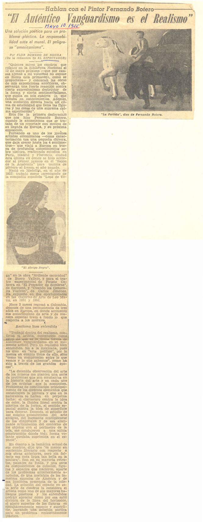 El auténtico vanguardismo es el realismo. El Espectador. Mayo 10 de 1955.