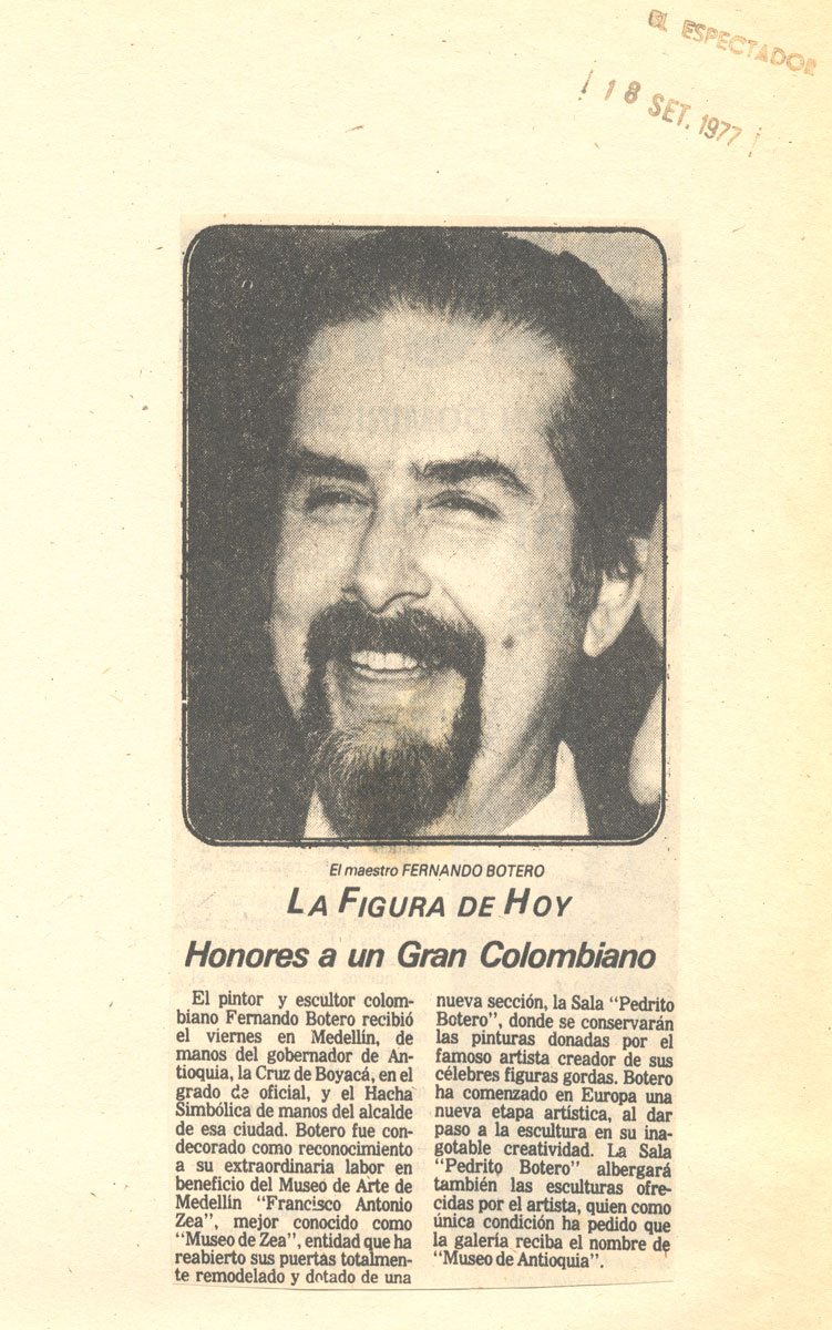 La figura de hoy, Honores a un gran colombiano. El Espectador. Septiembre 18 de 1977.