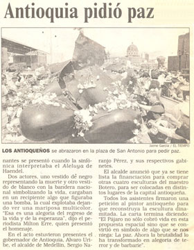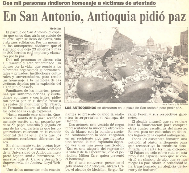En San Antonio, Antioquia pidió paz. El Tiempo. Junio 22 de 1995.