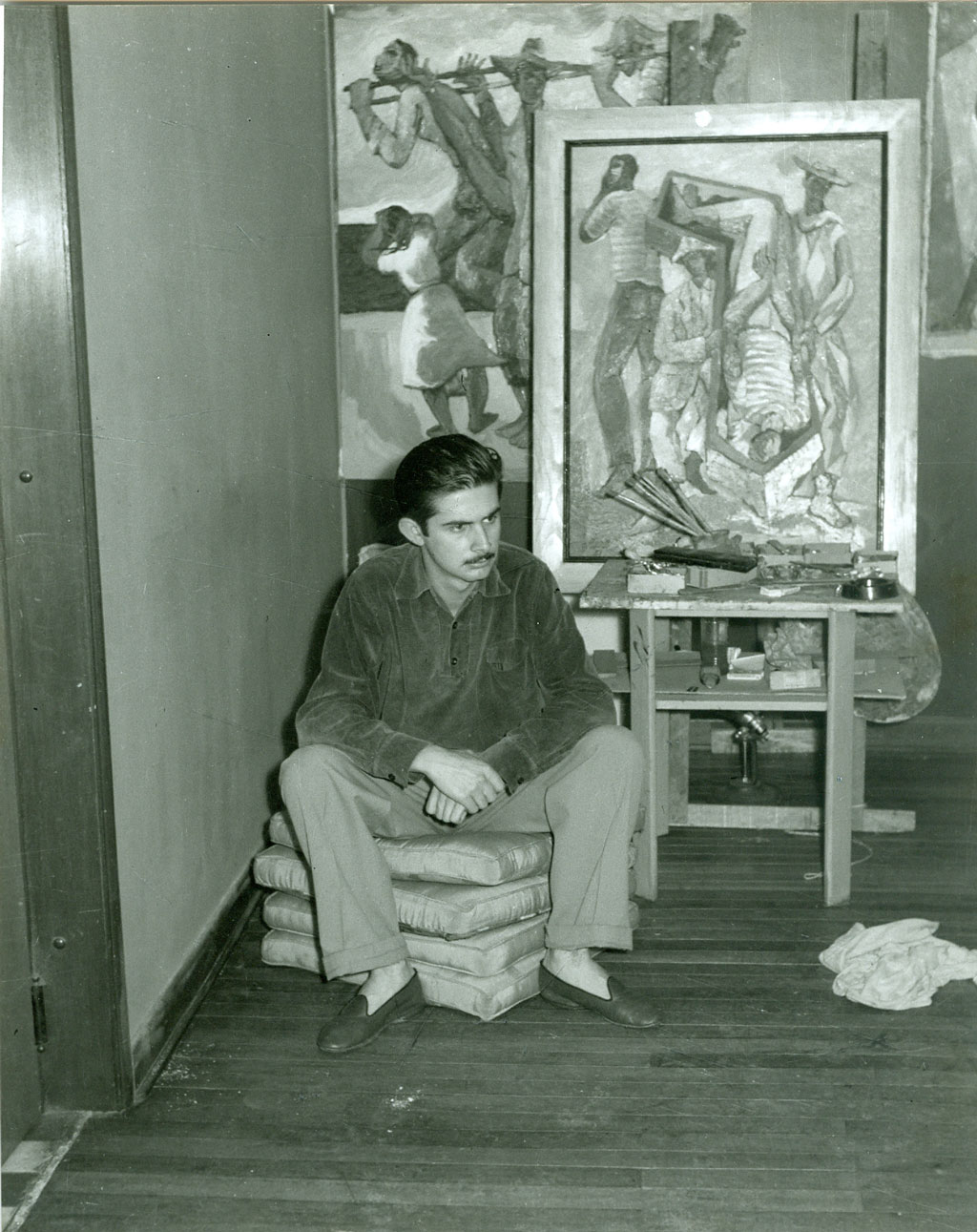 El pintor antioqueño Pedro Nel Gómez pinta los murales del Palacio Municipal de Medellín. Además de ser una de las primeras influencias en la obra de Botero,