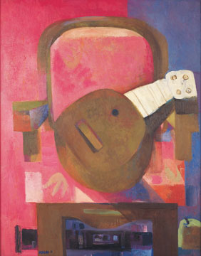 Mandolina sobre una silla. 1957. Óleo sobre tela. Museo Botero del Banco de la República.