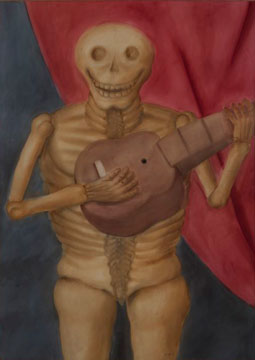 La muerte tocando guitarra. 1980. Acuarela. Museo Botero del Banco de la República.