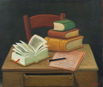Naturaleza muerta con libros. 1999. Óleo. Museo Botero del Banco de la República.