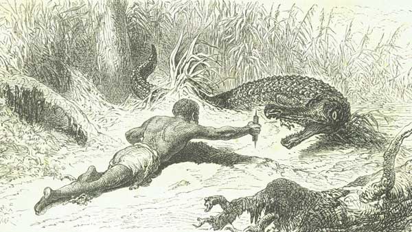 “De los bíceps y del ánimo versátil de los bogas dependió en parte, la vida política y económica de la Colonia y de los primeros treinta años de régimen republicano […] el alma primitiva de los bogas carecía de valores perdurables en su sorda lucha humana. Incluso en sus diversiones se la jugaba toda, como en la caza de caimanes con una pequeña estaca de puntas afiladas que introducían en la jeta bestial. […] Así, en los encuentros de los champanes, cuando las tripulaciones soltaban los más obscenos insultos, entremezclados con ruidosas carcajadas; a la hora del almuerzo al amparo de los barrancos; en sus atroces luchas que terminaban en abrazos; con el cuerpo enterrado en las arenas de las playas para defenderse de los mosquitos y jejenes; a la llegada de los poblados detrás del alcohol y del sexo, como, también, en las insurrecciones suyas que terminaban en bulliciosos fandangos”.