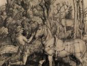 En el grabado, Durero se inició, desde muy joven, con su maestro Michael Wolgemut y su técnica gráfica estuvo ligada a la pictórica, tanto en el tratamiento de las formas como en la iconografía que representa. Aprendió la talla de madera, tacos y grabados xilográficos y se especializó en el grabado en cobre con buril, técnica que había aprendido de su padre y en la que alcanzó la perfección, hasta tal punto que, entre 1513 y 1514, se dedicó casi exclusivamente a ella. Durero es conocido por sus famosos retratos y autorretratos, pero también destaca en temas alegóricos, mitológicos y, sobre todo, religiosos. El aspecto religioso de su obra grabada muestra la época convulsa que vivió y la reforma luterana, cuya influencia se percibe en sus últimas estampas cargadas de austeridad y profundidad.