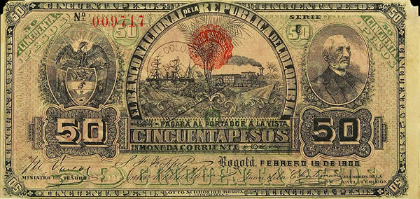 50 Pesos · Banco Nacional de la Repúbica de Colombia · 1900