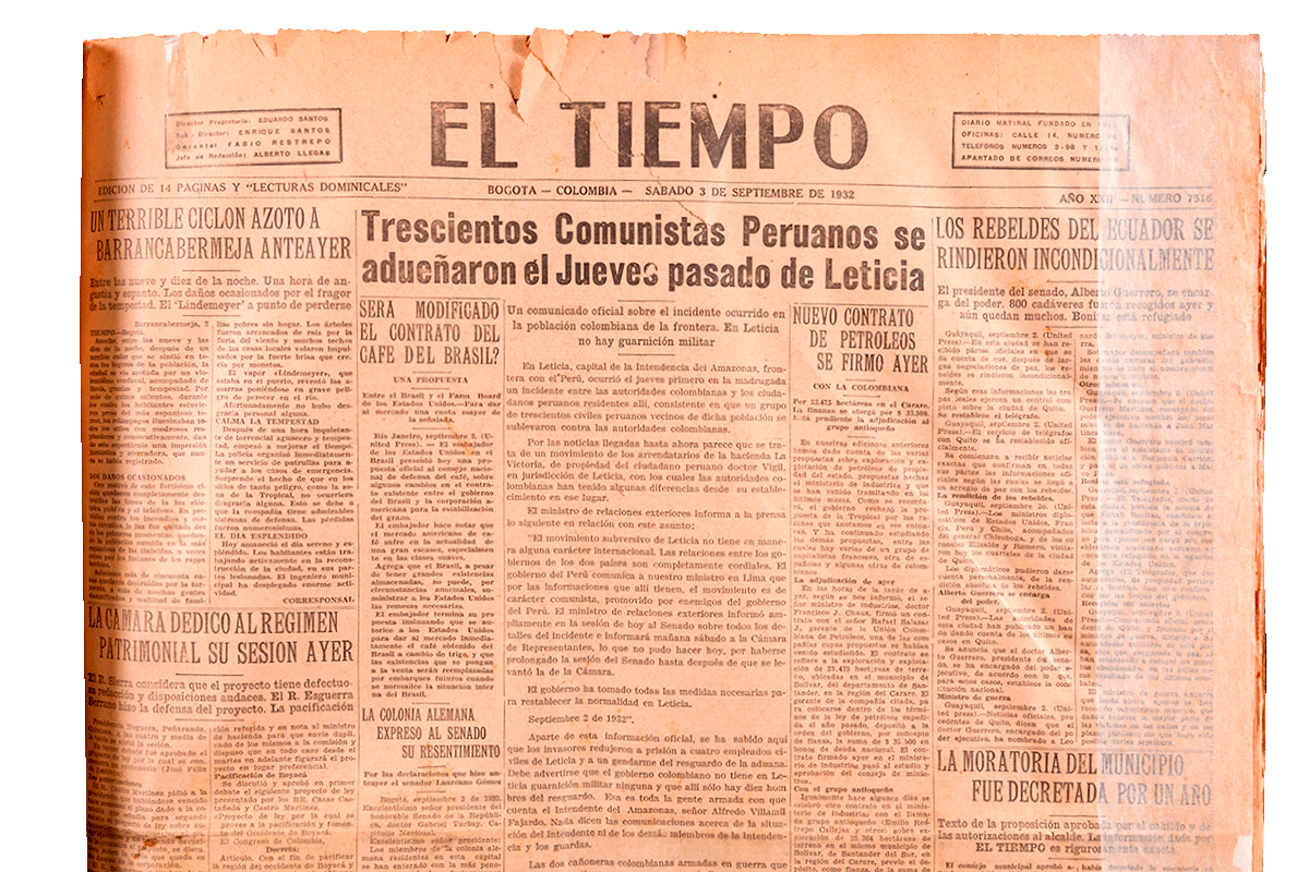 El 1° de septiembre empieza la guerra entre Colombia y Perú por territorios en la región amazónica.