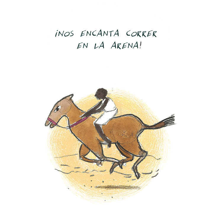 Desde que los caballos son pequeñitos, los niños y jóvenes isleños que suelen cuidarlos bajan todos los días en la madrugada para bañarlos en el mar, donde los ejercitan y les enseñan a familiarizarse con el agua y la playa, así como con ellos, para que más adelante puedan correr sin problemas.