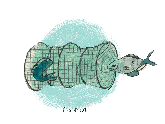 La última arte de pesca sobre la que les quiero contar son las nasas (fishpots), que consisten en una especie de cesta o caja cerrada con una entrada (fonil) por donde entran los peces y después no consiguen salir. Tradicionalmente, se tejían con fibras naturales sacadas del bosque seco de las islas, las cuales tenían olores que les llamaban la atención a los peces. Si bien todavía quedan algunas personas en San Andrés que las tejen así, en la actualidad la mayoría son hechas con un marco de madera y malla de alambre o plástico. Esta pesca se ha usado principalmente para subsistencia, esto es, para obtener lo necesario para alimentar a la familia, y no para vender. Hasta hoy, muchos pescadores mantienen sólo unas cuantas nasas, que dejan cerca a la costa y revisan cada cierto tiempo, para llevar comida a la casa.