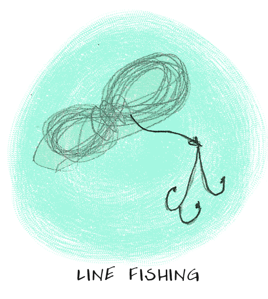 En la actualidad, los pescadores artesanales isleños utilizan al menos tres artes de pesca que han cambiado a lo largo del tiempo, pero que por lo general tienen un vínculo con el pasado. La primera se llama línea de mano (line fishing), y consiste en un nailon y uno o varios anzuelos. Parece sencillo pero encierra una gran cantidad de técnicas y conocimientos que, si no los dominas, no te permiten pescar bien. Están, por ejemplo, la pesca en agua poco profunda, la pesca con palangre vertical o la pesca con troleo, que son todas variaciones de la línea de mano, en las cuales cambian la profundidad, la velocidad, el tipo de anzuelo y hasta la carnada.