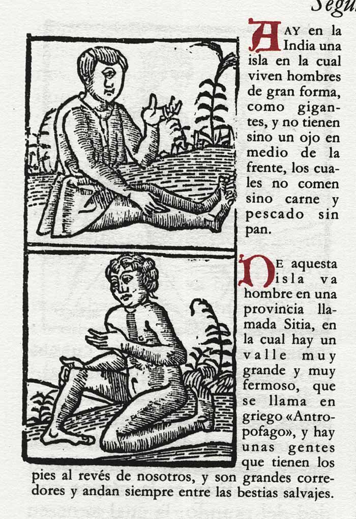 “Entendió también que lexos de allí avía hombres de un ojo y otros con hoçicos de perros que comían los hombres, y que en tomando uno lo degollavan y le bevían la sangre y la cortavan su natura”2.