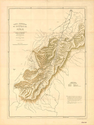 El territorio huilense fue explorado por Codazzi en 1857 y en el Atlas publicado en 1864 figura como parte del Estado del Tolima. Los mapas de la Comisión Corográfica formaron la cartografía oficial del país hasta fines de la década de 1920, cuando la Oficina de Longitudes, dependencia del Ministerio de Relaciones Exteriores, realizó nuevos levantamientos. Entre sus mapas figura el primer mapa oficial del departamento del Huila, publicado en 1928.