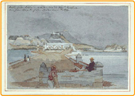 Para la ciudad es muy perjudicial ya que es fácil de tomar una vez que se haya desembarcado, y tan cerca de la ciudad que, desde allí (tiene 3 - 400 pies de altura) puede derribar todo a cañonazos. Más hacia el oeste se levanta la Popa con la imagen de Santa María de la Popa, muy visitada por los navegantes, y según Fidalgo un vacío sobre el mar, una loma larga que termina en la parte oriental en una especie de cono (similar a la popa del barco). Allí está el vigía, que debe mirar a través de un horizonte muy brumoso, ya que está demasiado alto. Y allí hay un monasterio, ¡Qué por milagro! no se ha caído aún, ya que la roca está bastante desgastada. Desde el río Sinú, Punta Gigante y toda Tierra Bomba, todo es formación calcárea (más reciente que la formación jurásica de las Islas Caimán) muy parecida a la de Punta Araya en el puerto de la Habana... llena de Meandritas, con pocas conchitas, pero absolutamente ninguna amonita, de la cual aún no he visto en toda Suramérica . Aquí y allá, en los valles, se extiende sobré la cal (como por ejemplo al pié de la Popa) un conglomerado de argamasa calcárea (lleno de piedras de Lidita). Sobre la Popa hay una batería de artillería poco utilizada debido a la altura. Tierra adentro al sur de Galerazamba hay una colina cónica (de barro, muy erosionada, con azufre sobre el yeso en el barro), que se denomina el Volcán y sobre el cual dice la leyenda que (hace 60 ó 70 años), de vez en cuando arrojaba llamas. Fidalgo no vió allí nada que pudiera parecerse a un volcán, excepto una charca en la cima, en la cual subían burbujas (hidrógeno sulfuroso?). El agua es fría, aunque a causa de las burbujas el vulgo dice que hierve. Tal vez es un volcán como el de Cumacatar, un volcán de aire inflamable!