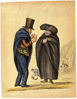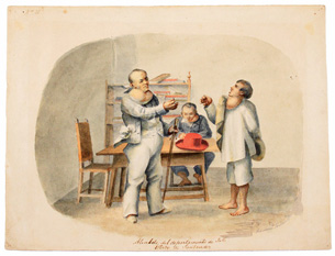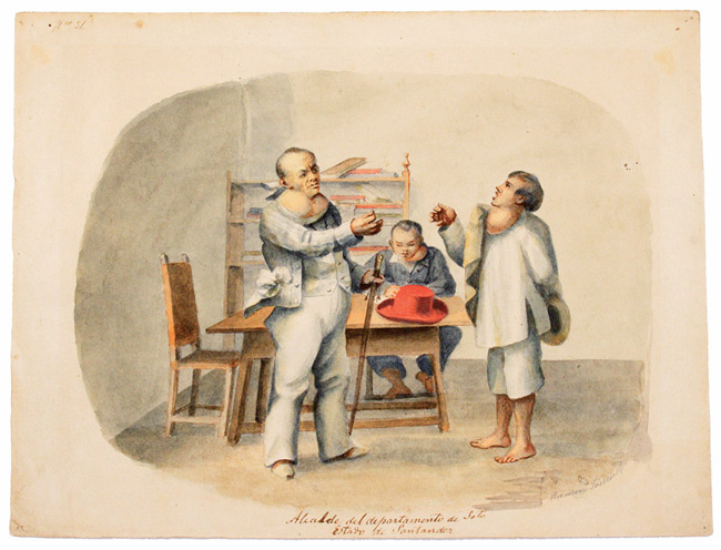Los artistas colombianos aprendieron de los viajeros y les colaboraron con sus dibujos. Los cuadros de costumbres en la Nueva Granada del siglo XIX, tanto literarios como pictóricos, presentaron una faceta que invitaba a la risa y que se conoció con el nombre de “jocosidades”. Al artista costumbrista lo llamó Baudelaire “el pintor de la circunstancia”20. Se percibe el goce con que el público local disfrutaba con lo que los escritores llamaron escaseces: la miseria, los gustos y los caprichos del pueblo21.