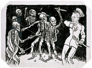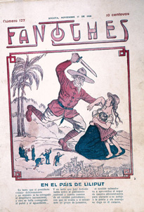 Comenzó a circular en Bogotá quince días después de que se clausuró Sal y Pimienta. El director y propietario fue también Manuel José Jiménez y se editaba en los mismos talleres. Fantoches se inició como una revista humorística, de crítica social. Su objetivo era “salir a divertir un poco al público. A hacer algunas monerías, algunas piruetas espirituales que distraigan un poco la murria de Bogotá y parte de Facatativá; para tomarle el pelo a los políticos, criticaremos de la moral más absoluta cuanto haya de criticable”35. Los colaboradores eran escritores, tanto de la capital como de provincia, reconocidos por su agudeza verbal. Inicialmente, y hasta el número seis, la revista trató temas de tipo social; a partir del número siete se ocupó de asuntos políticos. Y es en ese momento, a un mes de haber sido fundada, en que Manuel José Jiménez comenzó a dar rienda suelta a su verdadera y secreta intención: atacar al Gobierno, burlarse de la clase política, denunciar los peculados de las trasnacionales con los empresarios y políticos colombianos. Sus portadas son fiel muestra de la debilidad de un Gobierno que permitía la violencia y la corrupción. Fantoches se publicó durante el fin de la Hegemonía conservadora.