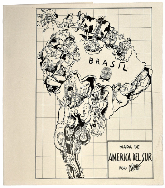 En lugar de competir con los caricaturistas del país en los temas nacionales se especializó en el campo de la política internacional. Su mirada a la situación de la posguerra europea y norteamericana, y al contexto latinoamericano, estaba cimentada en el conocimiento; su gráfica crítica elevaba el nivel de sus colegas colombianos. La censura no se daba cuenta de sus críticas directas a las dictaduras de todo el hemisferio. En 1950 trazó un mapa con los gobernantes, entre los que sobresalen Perón y Evita.
