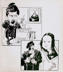 Jorge Moreno Clavijo, en lugar de exponer sus retratos de monolíneas característicos, presentó en la exposición cuadros de costumbres. Opinó que “los tiempos actuales son particularmente difíciles para el caricaturista. Sin embargo, también como ellos, sigue dibujando. No lo puede evitar”62.