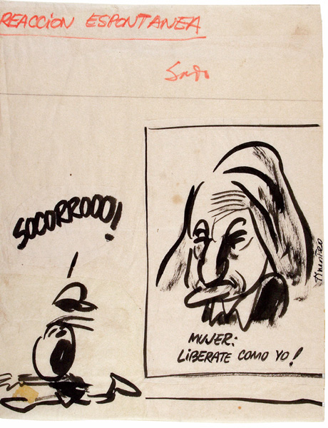 Su participación en la revista Alternativa, entre 1977 y 1980, presenta dos actitudes en la gráfica crítica: la tira cómica y la caricatura tradicional. En la primera se aleja de los planteamientos existencialistas anteriores y se dirige a denunciar los problemas concretos del país como la represión en la universidad, las distintas facetas de la izquierda, el cuestionamiento de la autoridad, la corrupción de los militares, el armamentismo, la impureza del sufragio, la persecución a la prensa, el analfabetismo. “El señor agente” es como un actor de teatro que revela los vicios del Gobierno y el sufrimiento de los habitantes, de un modo casi placentero. El “juás” —voz onomatopéyica del golpe del bolillo— produce hilaridad, en lugar de dolor.