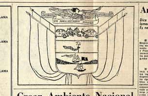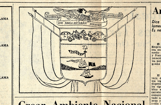 Un incidente que hizo historia en la caricatura lo protagonizó en La República. El 5 de julio, el periódico publicó una parodia del escudo nacional: el cóndor tiene por cabeza el perfil del presidente Valencia. En el primer campo, las cornucopias representantes de la riqueza son reemplazadas por dos automóviles con la bodega abierta de la que se lanzan mutuamente papeles que dicen SOS. En el segundo campo, el gorro frigio tiene atada una corbata de rayas, símbolo del clientelismo. En el tercer campo, las carabelas del istmo de Panamá comercian con cocaína. Arriba se encuentra el lema: “Las calumnias que abrillantarán nuestras reputaciones”.