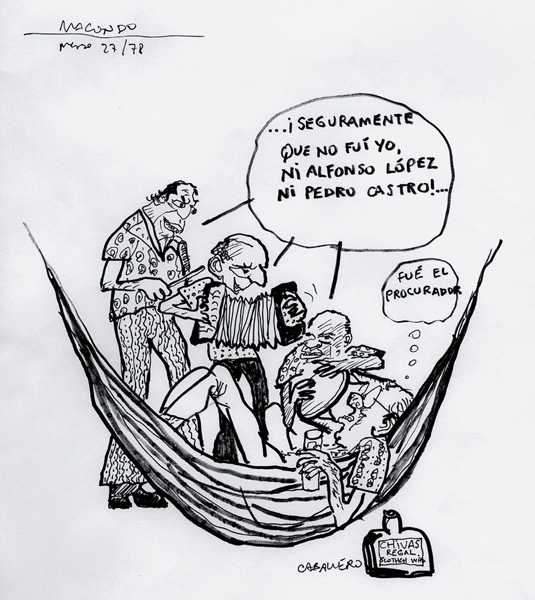 Los ancestros costeños de Alfonso López Michelsen lo llevan a participar en la fundación del Festival Vallenato. El caricaturista recuerda la canción en que se menciona al padre del presidente, Alfonso López Pumarejo, y convierte la escena en un cuadro de costumbres políticas, cuando un grupo de músicos, entre ellos Álvaro Gómez, le canta para develar el asunto del procurador: …¡Seguramente que no fui yo, ni Alfonso López, ni Pedro Castro…!
