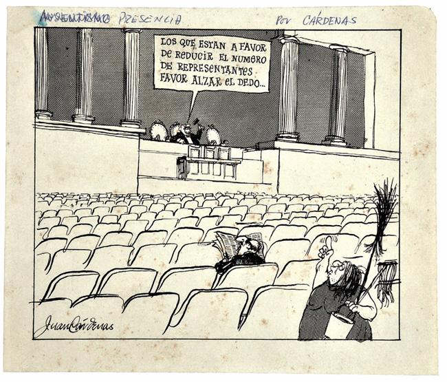 El Frente Nacional fue símbolo de tolerancia, al menos en sus primeros años. Uno de sus éxitos, según Posada Carbó, fue “el mantenimiento básico de las libertades públicas (en contravía de casi la totalidad de América Latina)”71. La gráfica crítica no escapó de la efervescencia de la época. Por el contrario, hizo un giro interesante porque aplicó las modalidades de la caricatura social a la política. La política se convirtió, gracias al ingenio de los dibujantes, en costumbre. Se puede decir que se aligeró.