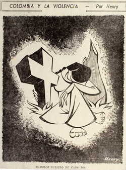 La caricatura de la “gran prensa” ha sido estudiada con detenimiento: el historiador William Molina Merchán publicó un artículo titulado “La caricatura política durante el Frente Nacional”72, producto del análisis de 1.556 caricaturas de El Tiempo y 1.648 de El Siglo. Encuentra que los temas más destacados son: la política internacional, la nacional, la economía y la desigualdad.