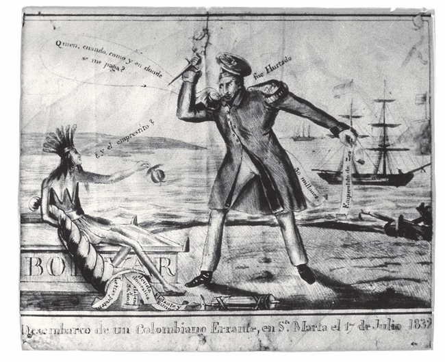 “Las aleluyas” eran un género religioso que fue apropiado por la gráfica política para criticar a uno de los bandos de la Convención de Ocaña. Aunque ya había tenido lugar la Independencia, los sistemas coloniales perduraron en el arte. El asunto de esta caricatura era la lucha partidista en la Convención de Ocaña, que tuvo lugar entre abril y junio de 1828. El tema, tratado escatológicamente con el uso de la lavativa, está expresado con la gráfica y con versos. Las publicaciones usaron el animalismo para los enfrentamientos entre masones y antimasones.