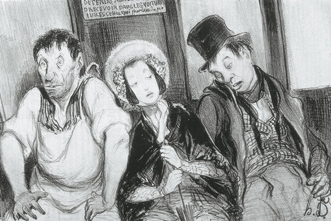 Intérieur d’un omnibus./Entre un homme ivre et un charcutier
