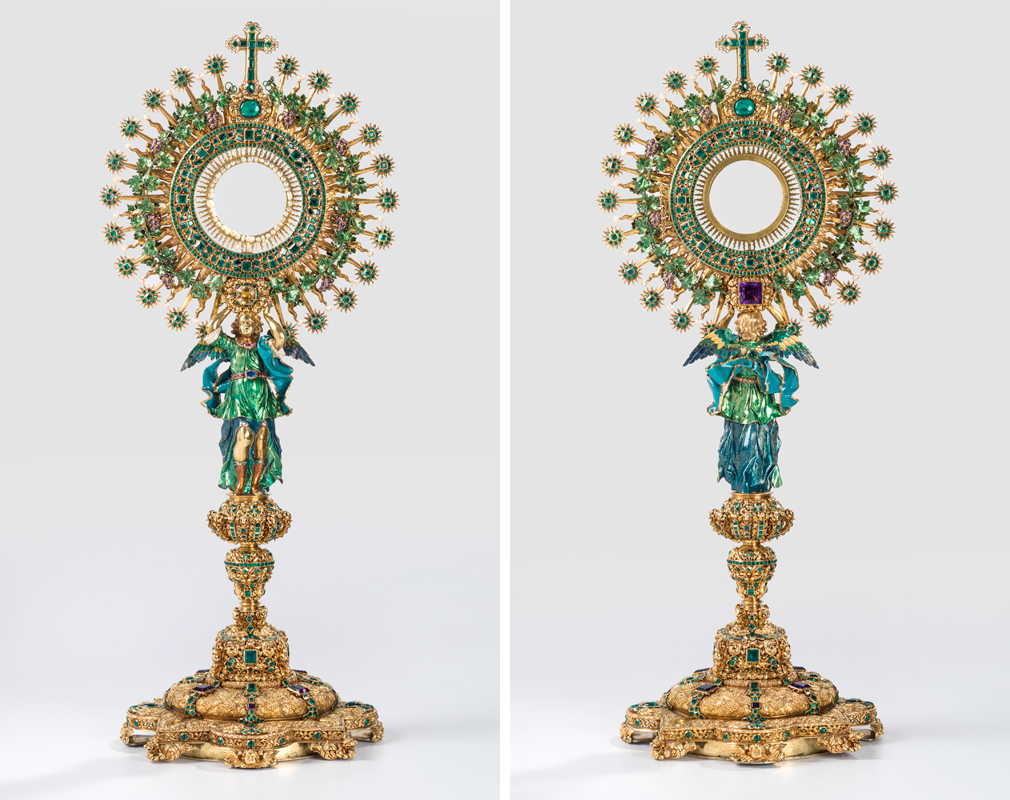VER DETALLEEn total son 1.759 piedras preciosas de la mayor calidad, engastadas en un tabernáculo móvil hecho con nueve kilogramos de oro de 18 quilates, de estilo barroco.