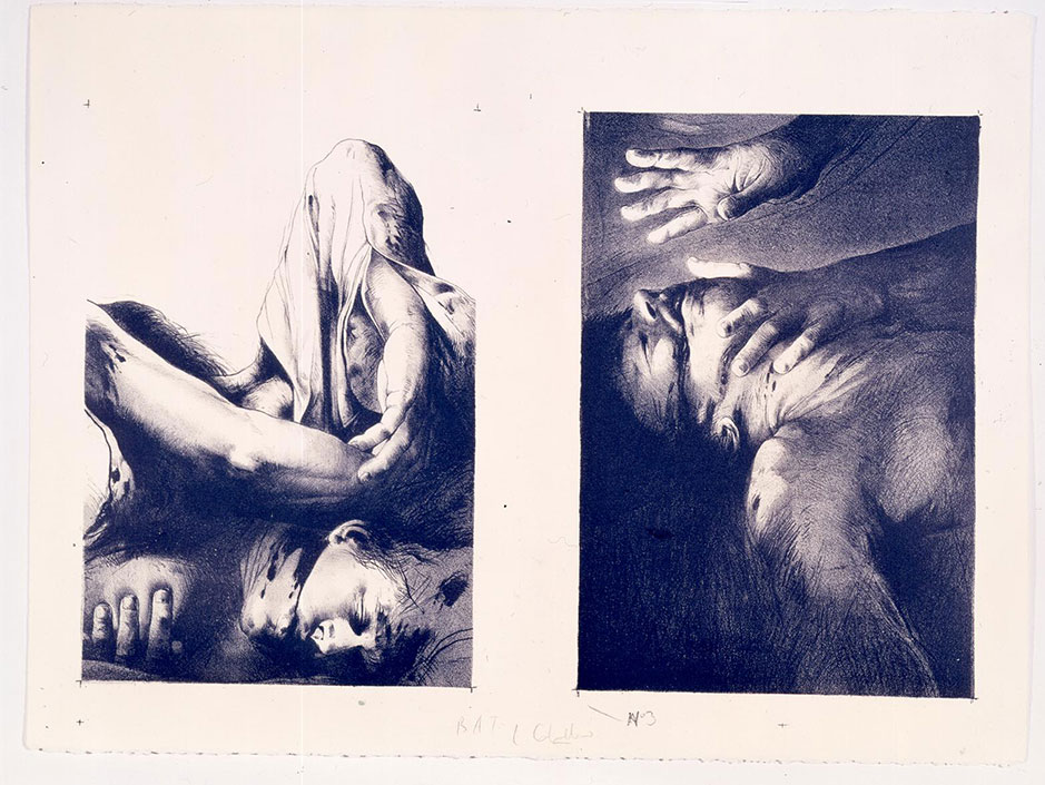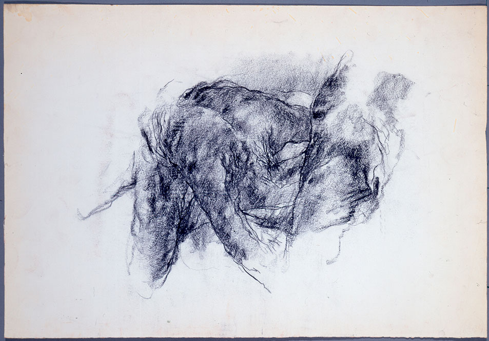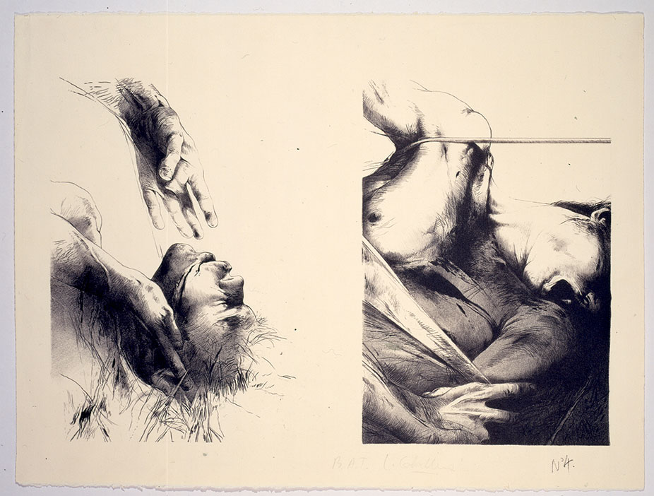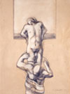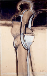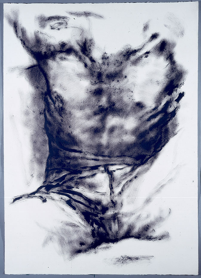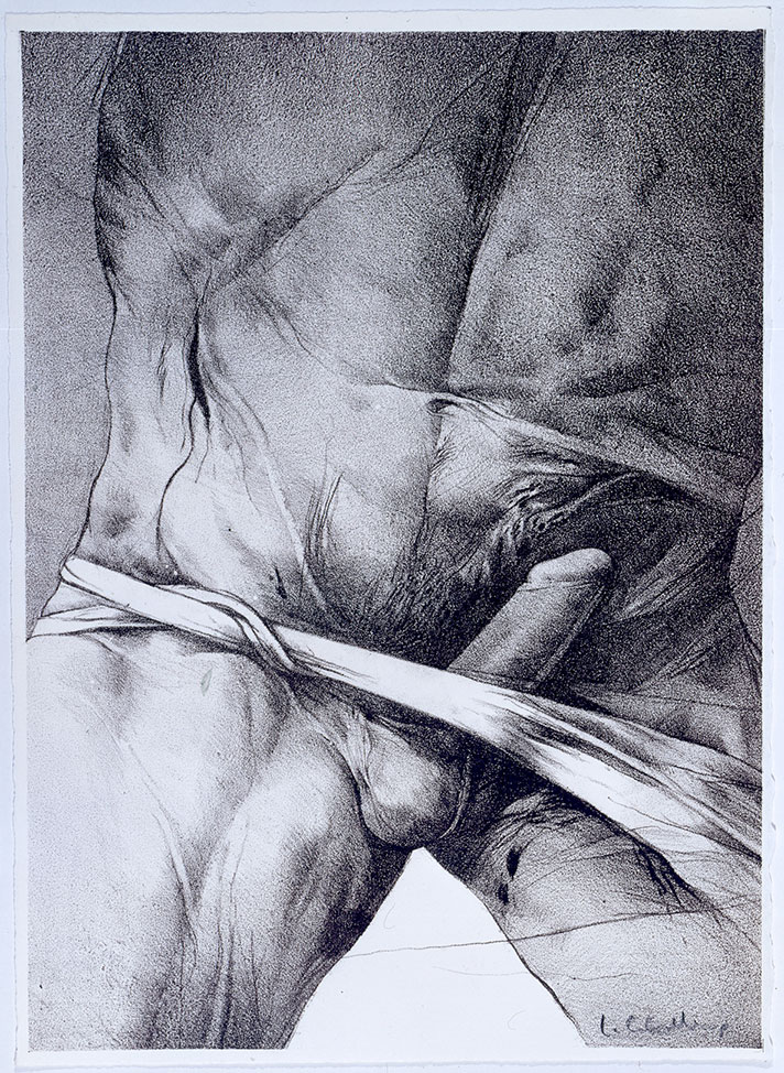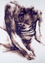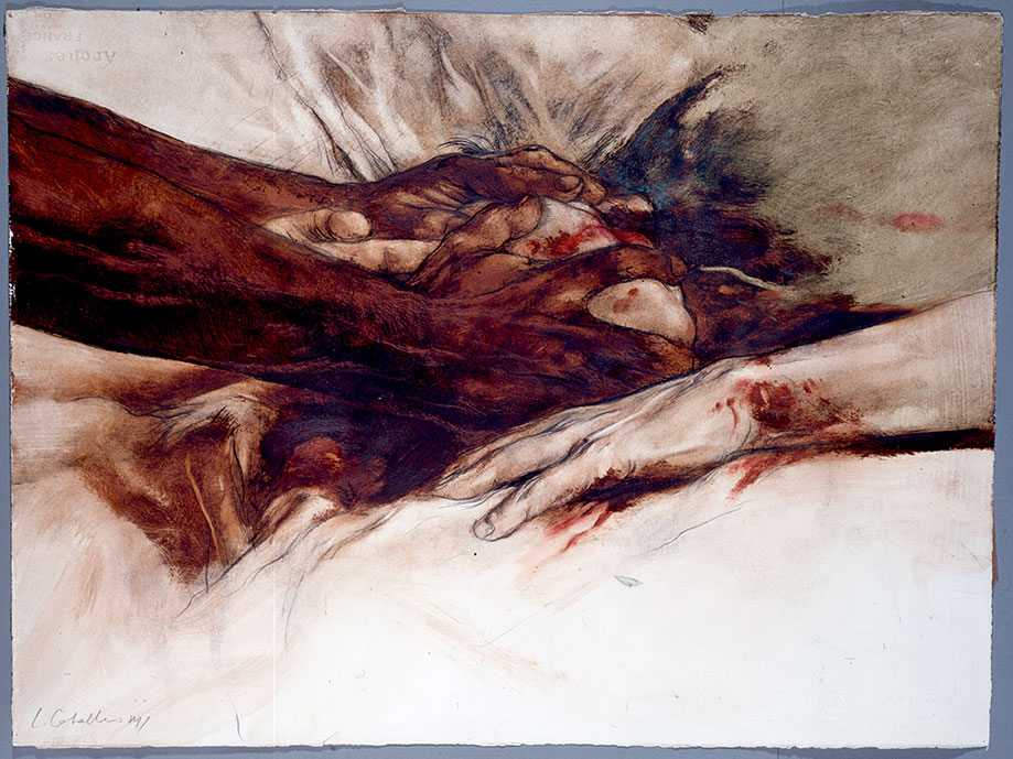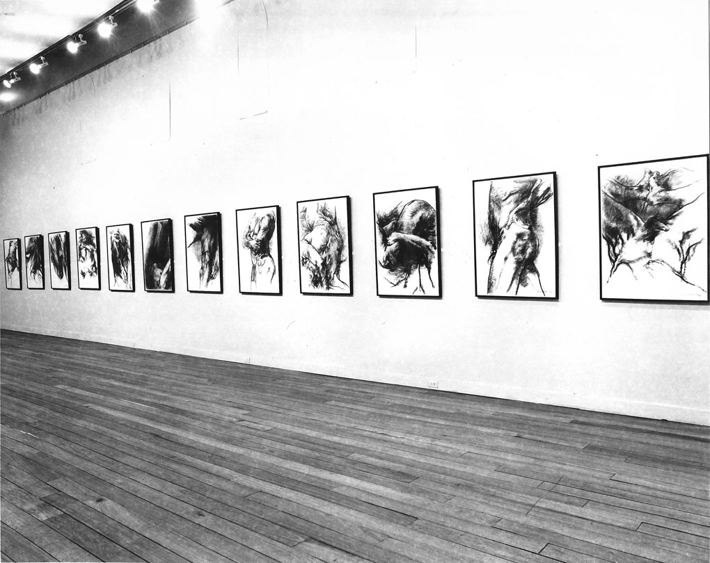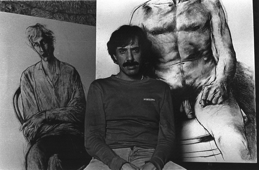 "Hay que intentar hacer 'el gran arte'. Una gran obra. En general, el arte contemporáneo peca por falta de ambición. En plástica, hacer una gran obra es crear una imagen necesaria. Lo demás es decoración. En mi caso, esa "imagen necesaria" que busco ha sido siempre la misma. No el mismo cuadro, sino la misma imagen: la belleza del cuerpo del hombre, la tensión entre los cuerpos, su relación de deseo o de rechazo, su necesidad de unión. He intentado hacerla de muchas maneras -realista, expresionista, formalista-, perdiéndome cuando olvidaba que, esas maneras eran sólo caminos. Esta vez intento una vez más crear esa imagen necesaria. Intento hacerla real, y más aún, sagrada (y la pinto en esta galería que fue una iglesia: es decir, un lugar consagrado). Esa gran obra es, para empezar, una obra grande. Un cuadro de gran tamaño que permite, más que otro formato, una reflexión plástica completa. Un cuadro en el cual 'quepa' físicamente todo lo que siempre he pintado: el hombre solo, vivo, muerto, sufriendo, amando, y a la vez bello y terrible, y en su relación con otros hombres, de deseo, o de compasión; y, también mis sentimientos: adoración ante la belleza y la fuerza, y ante la fuerza caída. El gran tamaño condiciona la forma, el tema, el color -o la ausencia de color. La dificultad de realizar una imagen global que siga siendo sugestiva hace que lo realice en blanco y negro, es decir, dibujada, no pintada. El dibujo permite ser menos realista y a la vez más real, más directo y a la vez más simbólico (porque el dibujo es ya en sí una abstracción). Me permite mostrar sin relatar, evitando que la escena pintada sea simplemente anecdótica. No se trata de representar la idea, o la imagen, sino de convertirla en una realidad pictórica. Eso es lo que intento: gran arte."