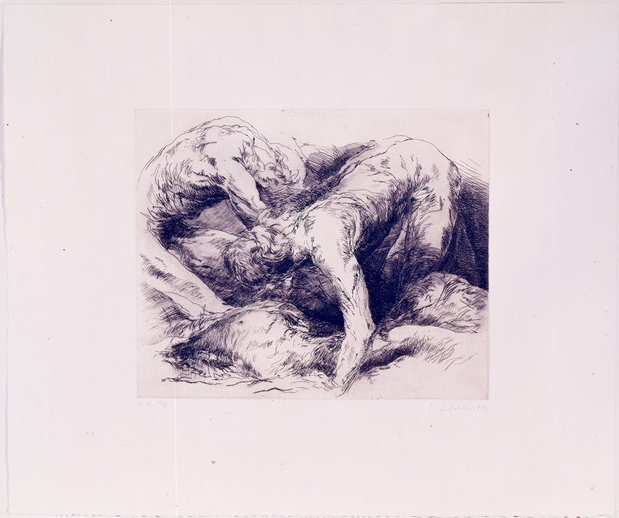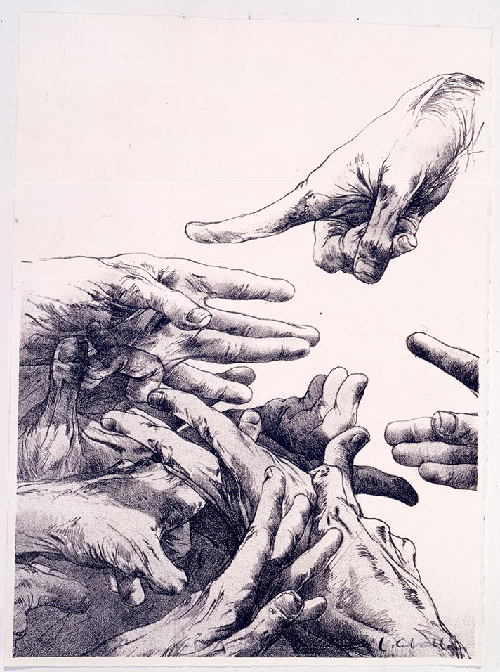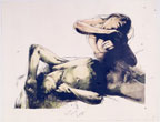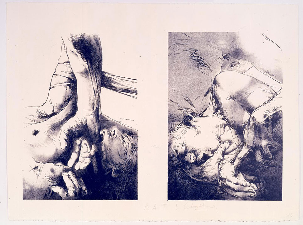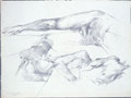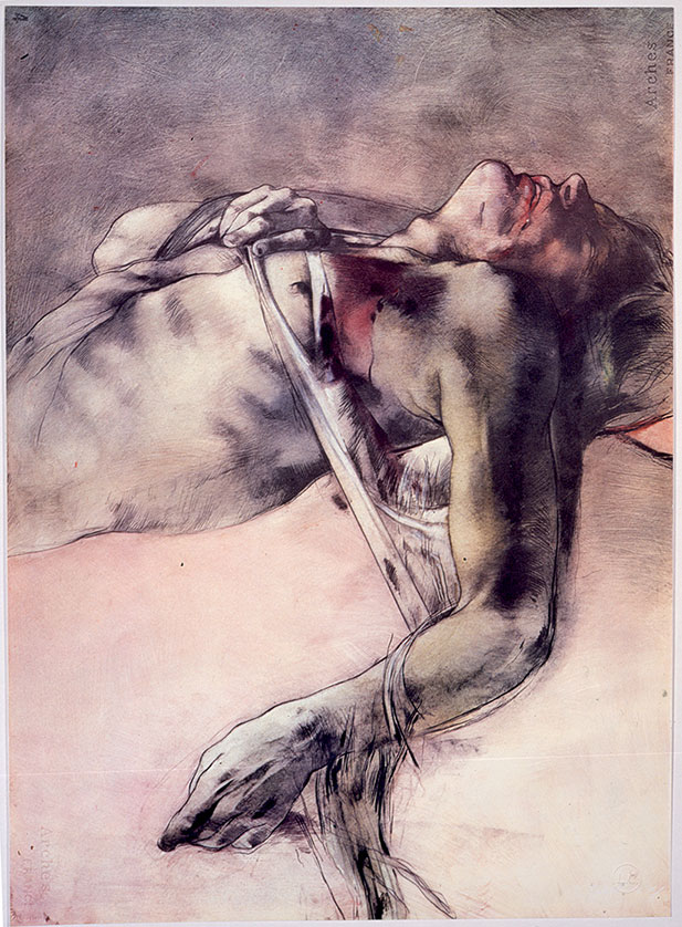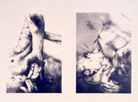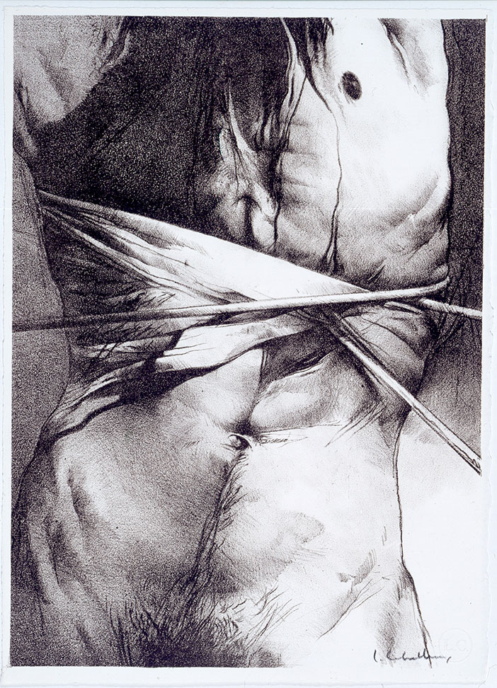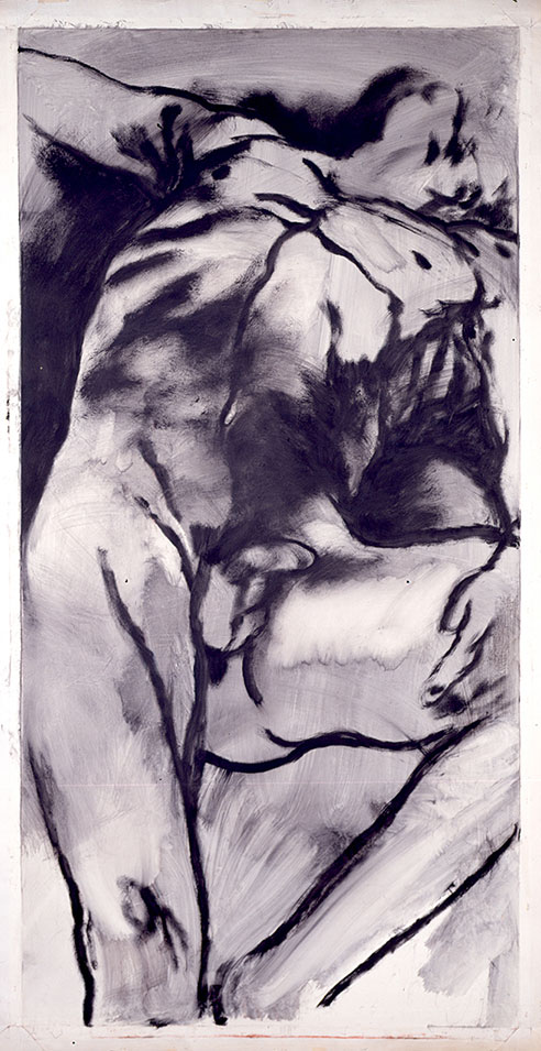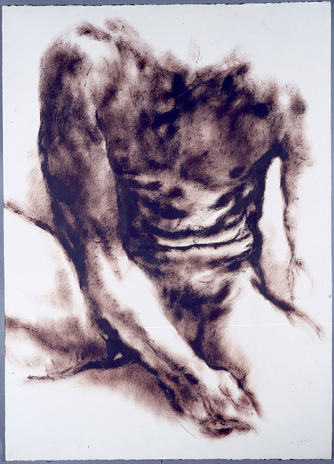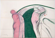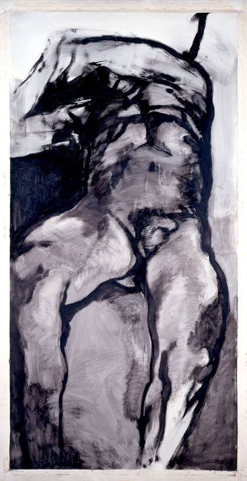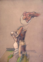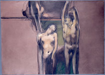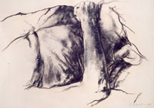 "Hay que intentar hacer 'el gran arte'. Una gran obra. En general, el arte contemporáneo peca por falta de ambición. En plástica, hacer una gran obra es crear una imagen necesaria. Lo demás es decoración. En mi caso, esa "imagen necesaria" que busco ha sido siempre la misma. No el mismo cuadro, sino la misma imagen: la belleza del cuerpo del hombre, la tensión entre los cuerpos, su relación de deseo o de rechazo, su necesidad de unión. He intentado hacerla de muchas maneras -realista, expresionista, formalista-, perdiéndome cuando olvidaba que, esas maneras eran sólo caminos. Esta vez intento una vez más crear esa imagen necesaria. Intento hacerla real, y más aún, sagrada (y la pinto en esta galería que fue una iglesia: es decir, un lugar consagrado). Esa gran obra es, para empezar, una obra grande. Un cuadro de gran tamaño que permite, más que otro formato, una reflexión plástica completa. Un cuadro en el cual 'quepa' físicamente todo lo que siempre he pintado: el hombre solo, vivo, muerto, sufriendo, amando, y a la vez bello y terrible, y en su relación con otros hombres, de deseo, o de compasión; y, también mis sentimientos: adoración ante la belleza y la fuerza, y ante la fuerza caída. El gran tamaño condiciona la forma, el tema, el color -o la ausencia de color. La dificultad de realizar una imagen global que siga siendo sugestiva hace que lo realice en blanco y negro, es decir, dibujada, no pintada. El dibujo permite ser menos realista y a la vez más real, más directo y a la vez más simbólico (porque el dibujo es ya en sí una abstracción). Me permite mostrar sin relatar, evitando que la escena pintada sea simplemente anecdótica. No se trata de representar la idea, o la imagen, sino de convertirla en una realidad pictórica. Eso es lo que intento: gran arte."