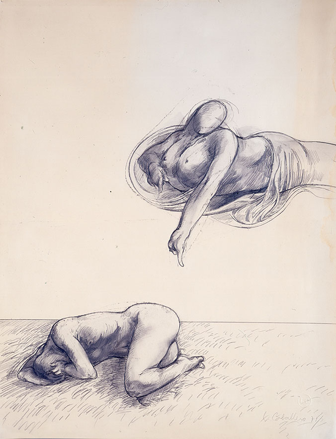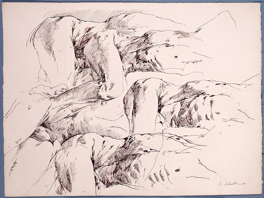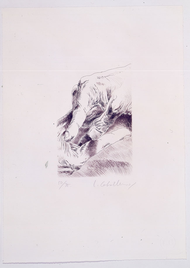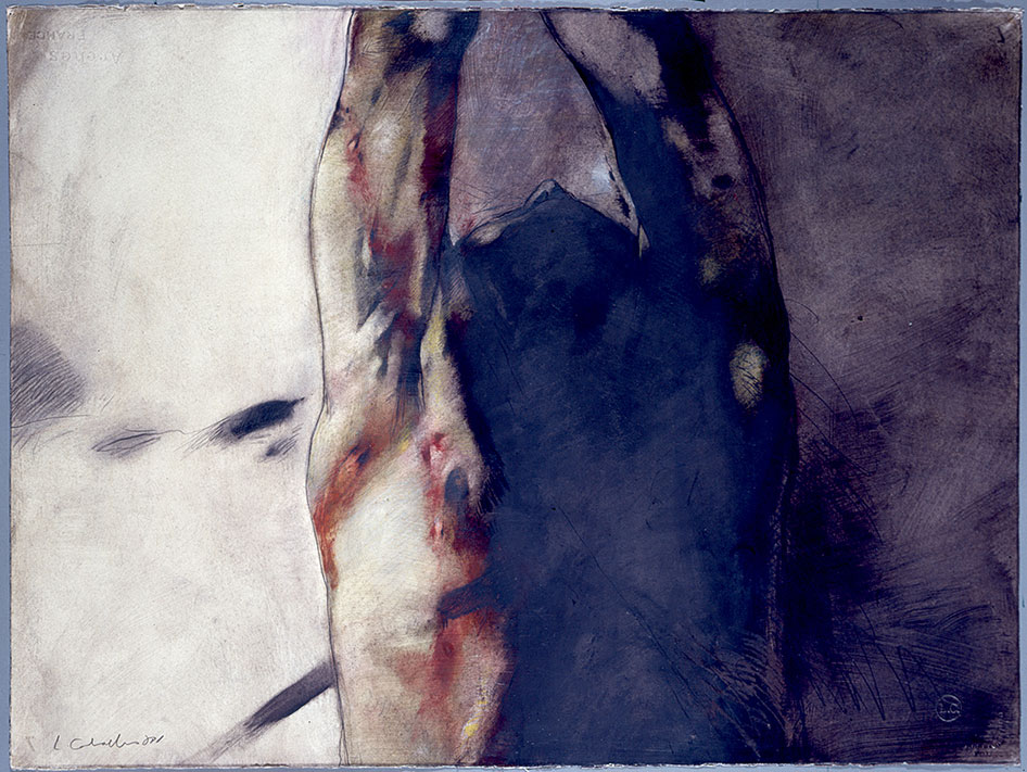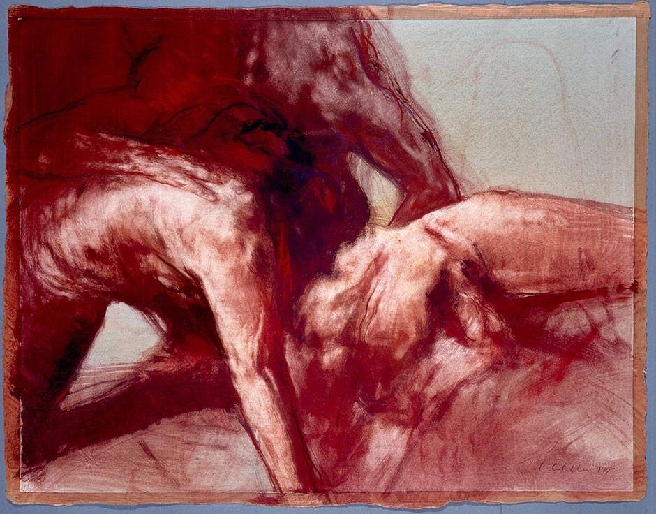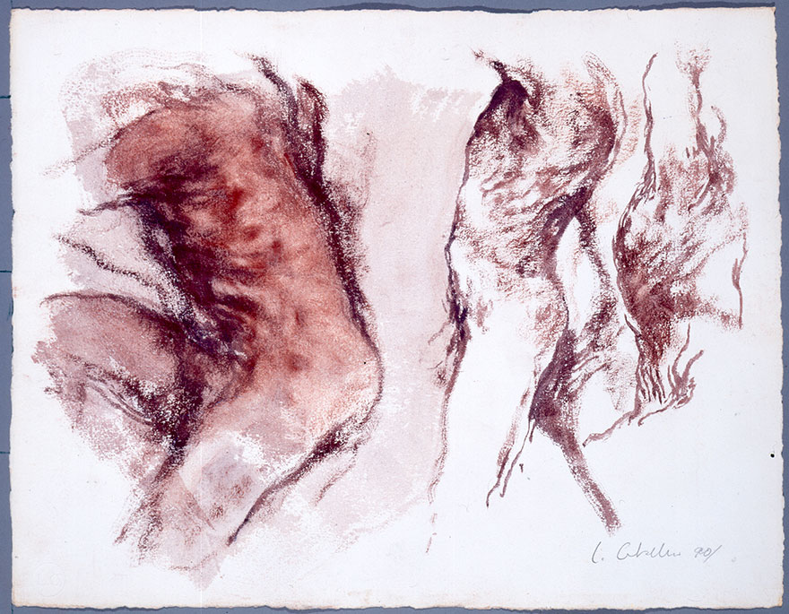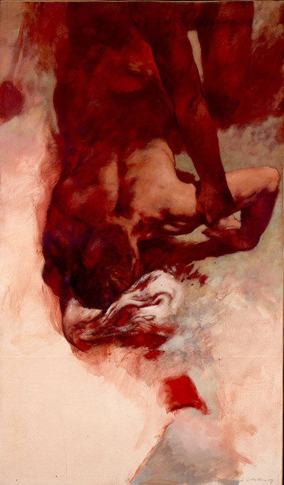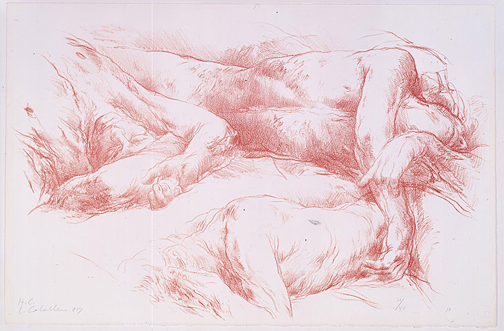 Al observar el conjunto de las obras de Luis Caballero sorprende ver que una cosa que reconocemos y denominamos como 'cuerpo' puede tener tantas formas de existencia. El artista pareciera haberse maravillado en la contemplación e inquisición obsesiva de un único motivo (que nunca es el mismo). Así, cuerpo tras cuerpo, su motivo deja de ser un fin, porque cede a la imposibilidad de capturarlo. Y en el ejercicio de pintarlo propiamente —con sus huesos y músculos donde son, con sus bultos y comisuras—, no se trata de 'pintarlo bien'; se trata, en cambio, de asimilarlo como un medio. Luis Caballero mostró el cuerpo y sus mil y una maneras de estar, como un medio que se expresa a sí mismo como cuerpo, y simultáneamente expresa las particularidades de cada una de estas mil y una maneras de ser (un abrazo, una caricia, una herida, una caída, una sumisión, una elevación, un encierro, un abandono, una compañía, un fragmento, una totalidad, una mirada, un rechazo, un dolor, una liberación, un descanso, cualquier acto).