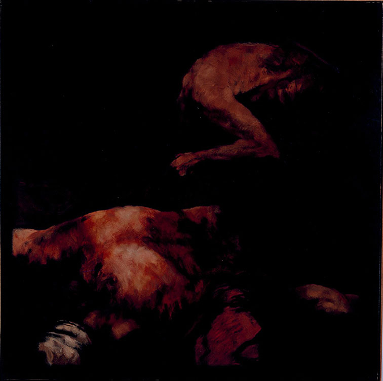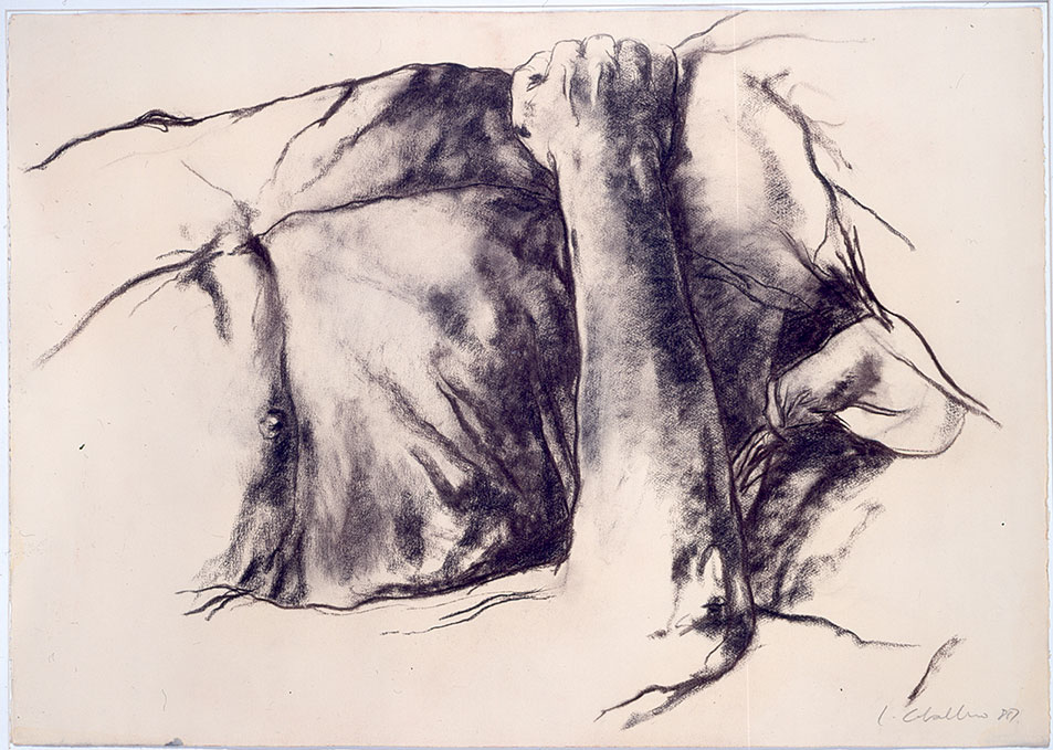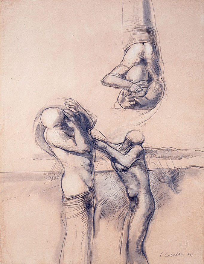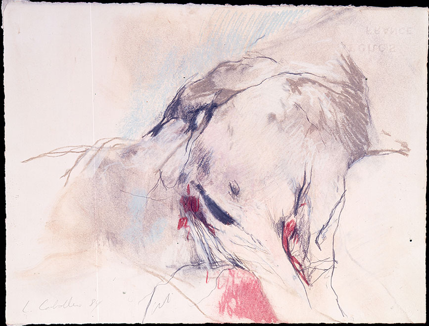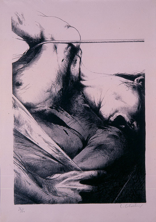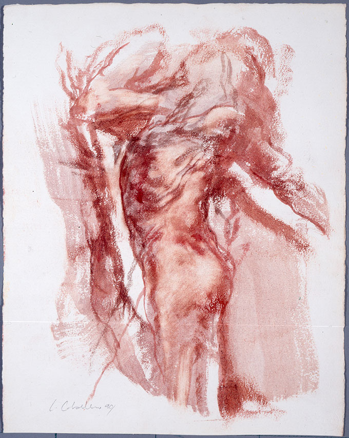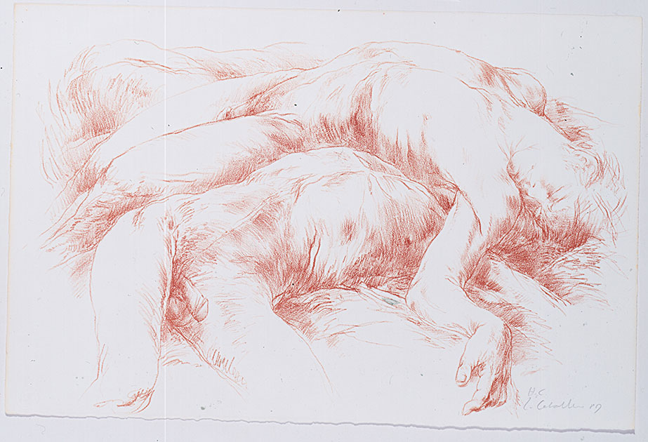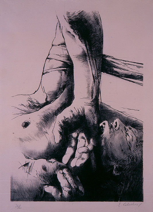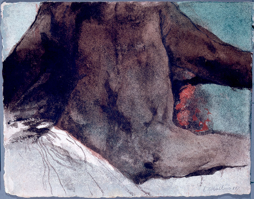 Al observar el conjunto de las obras de Luis Caballero sorprende ver que una cosa que reconocemos y denominamos como 'cuerpo' puede tener tantas formas de existencia. El artista pareciera haberse maravillado en la contemplación e inquisición obsesiva de un único motivo (que nunca es el mismo). Así, cuerpo tras cuerpo, su motivo deja de ser un fin, porque cede a la imposibilidad de capturarlo. Y en el ejercicio de pintarlo propiamente —con sus huesos y músculos donde son, con sus bultos y comisuras—, no se trata de 'pintarlo bien'; se trata, en cambio, de asimilarlo como un medio. Luis Caballero mostró el cuerpo y sus mil y una maneras de estar, como un medio que se expresa a sí mismo como cuerpo, y simultáneamente expresa las particularidades de cada una de estas mil y una maneras de ser (un abrazo, una caricia, una herida, una caída, una sumisión, una elevación, un encierro, un abandono, una compañía, un fragmento, una totalidad, una mirada, un rechazo, un dolor, una liberación, un descanso, cualquier acto).