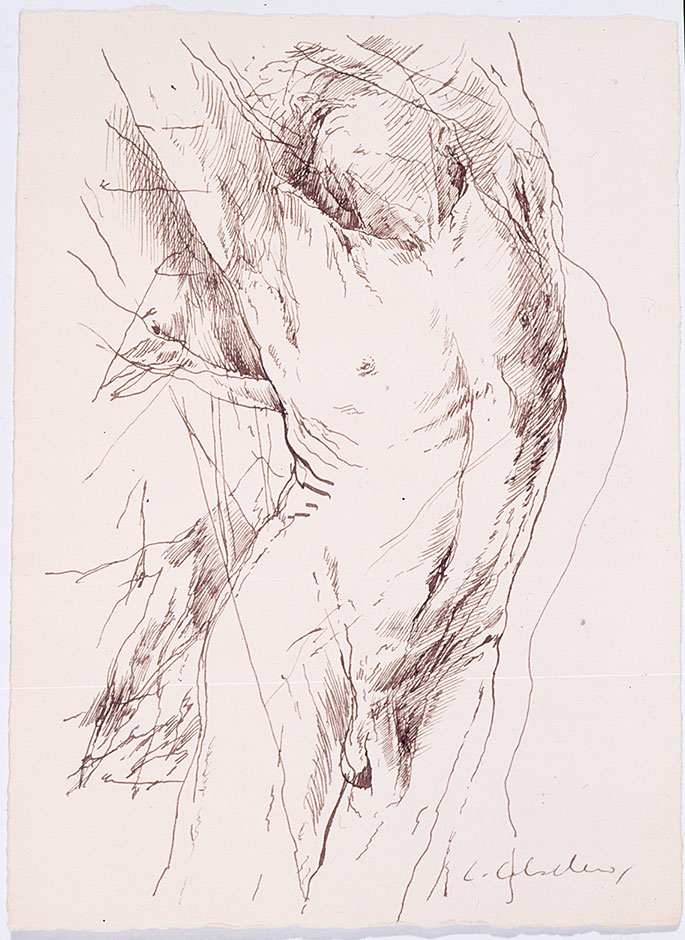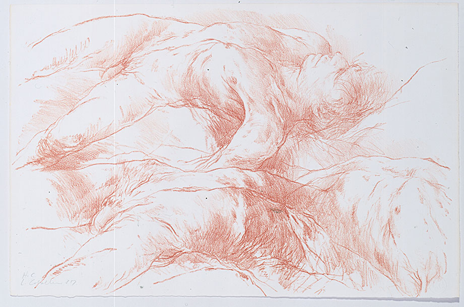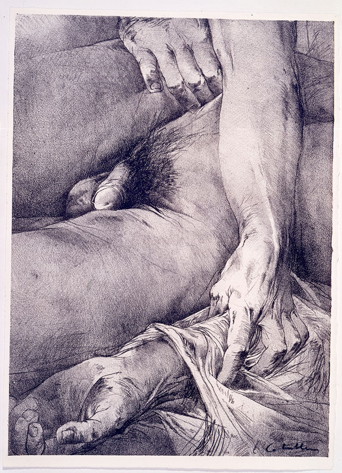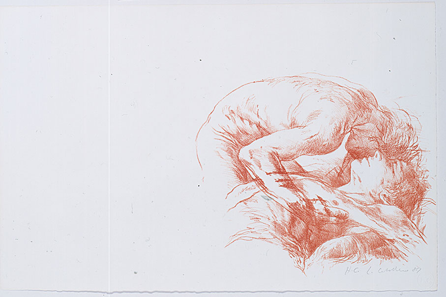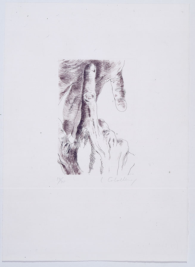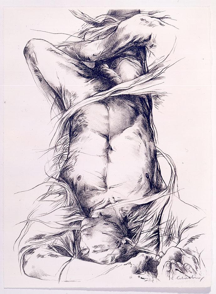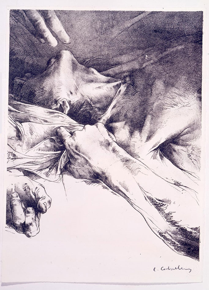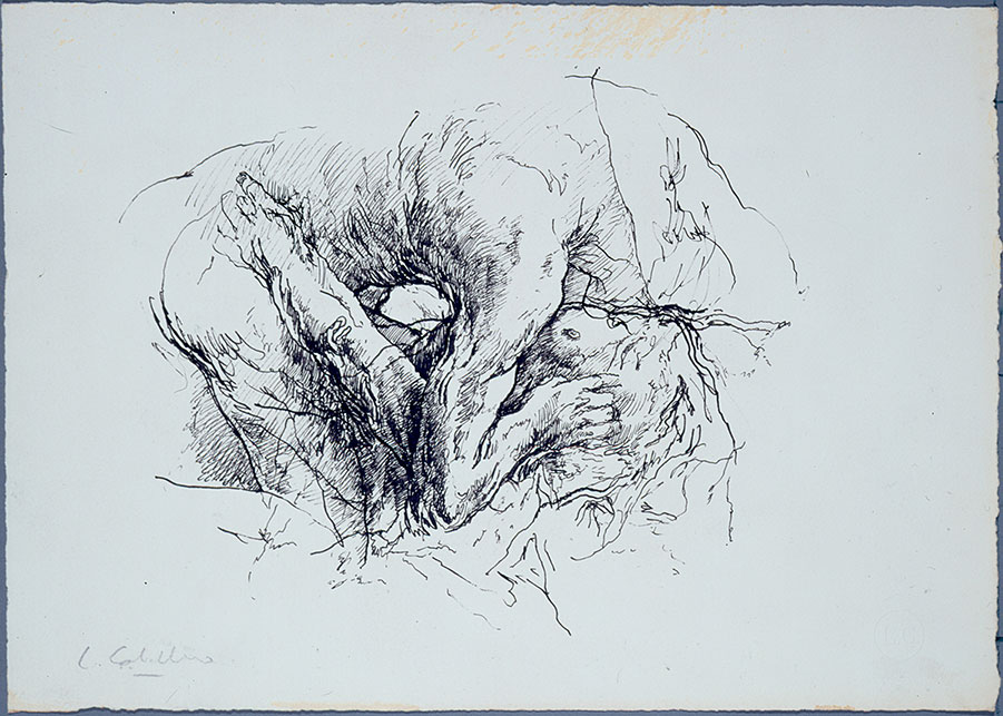 Al observar el conjunto de las obras de Luis Caballero sorprende ver que una cosa que reconocemos y denominamos como 'cuerpo' puede tener tantas formas de existencia. El artista pareciera haberse maravillado en la contemplación e inquisición obsesiva de un único motivo (que nunca es el mismo). Así, cuerpo tras cuerpo, su motivo deja de ser un fin, porque cede a la imposibilidad de capturarlo. Y en el ejercicio de pintarlo propiamente —con sus huesos y músculos donde son, con sus bultos y comisuras—, no se trata de 'pintarlo bien'; se trata, en cambio, de asimilarlo como un medio. Luis Caballero mostró el cuerpo y sus mil y una maneras de estar, como un medio que se expresa a sí mismo como cuerpo, y simultáneamente expresa las particularidades de cada una de estas mil y una maneras de ser (un abrazo, una caricia, una herida, una caída, una sumisión, una elevación, un encierro, un abandono, una compañía, un fragmento, una totalidad, una mirada, un rechazo, un dolor, una liberación, un descanso, cualquier acto).