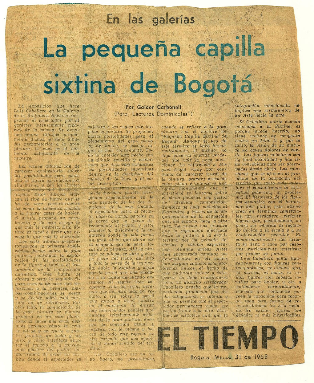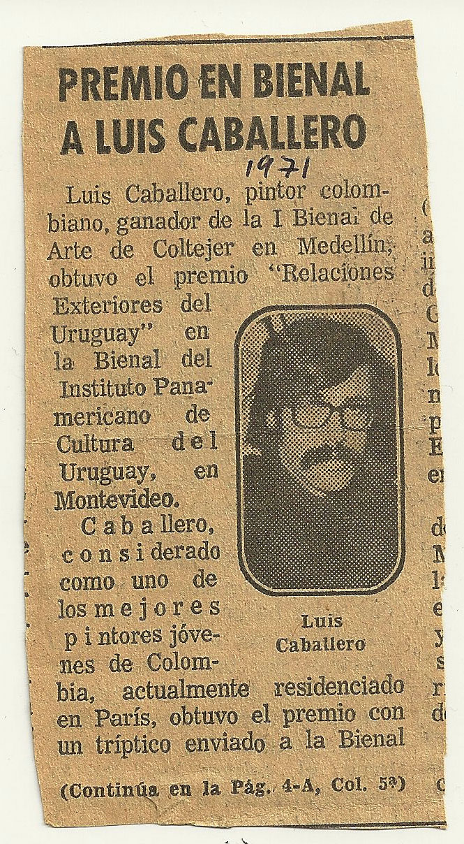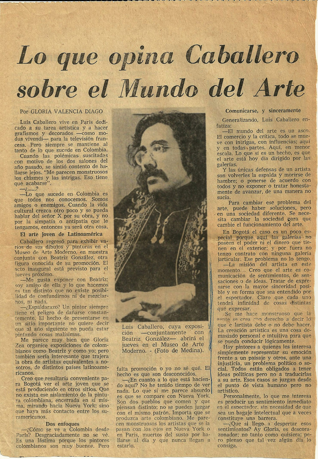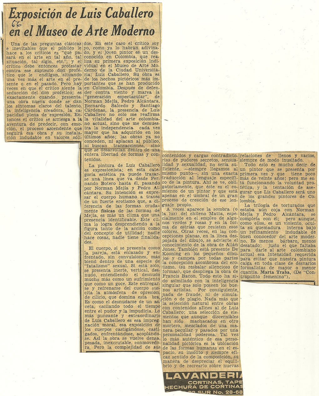 Artículo de Marta Traba sobre la exposición de Luis Caballero en el Museo de Arte Moderno.