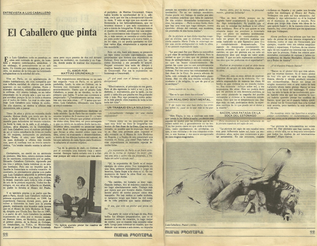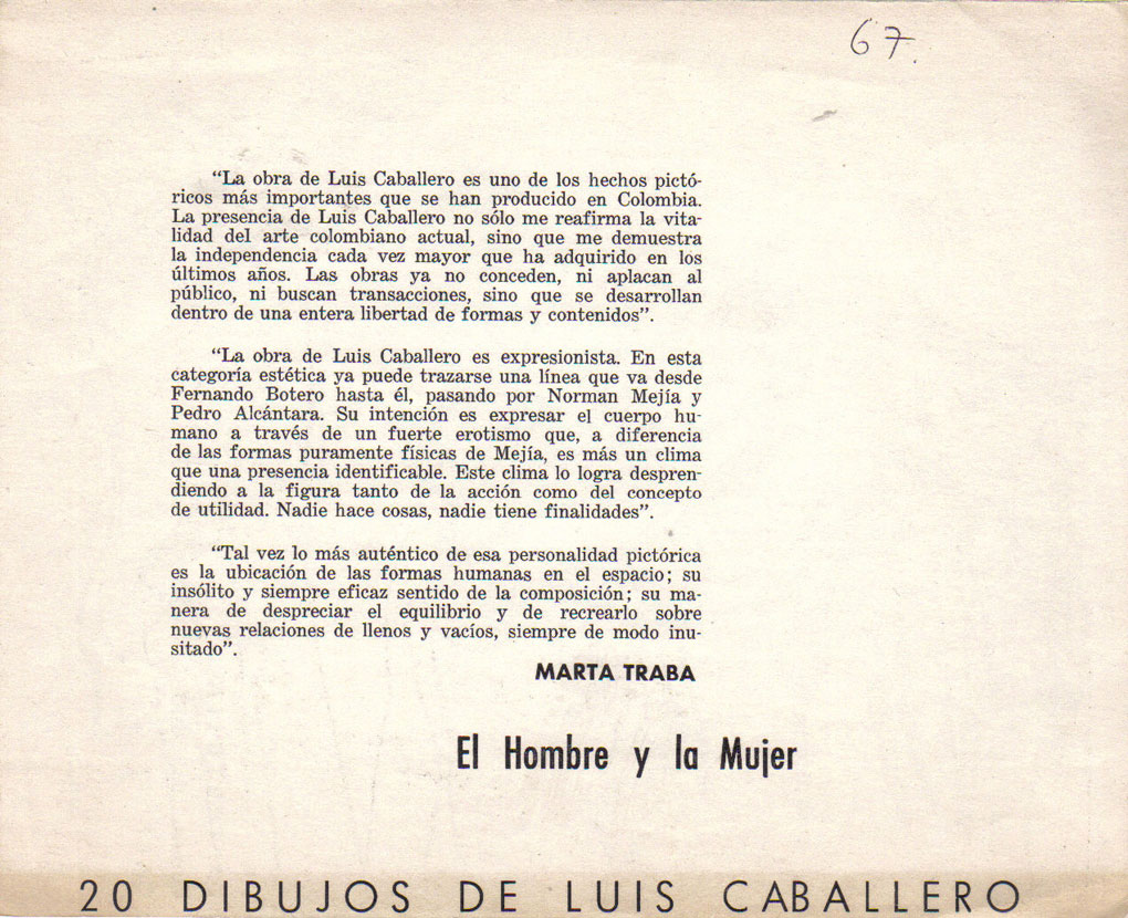 —Marta Traba. "Diez preguntas de Marta Traba a Luis Caballero", catálogo de exposición, Museo de Arte Moderno, Bogotá, 1973.