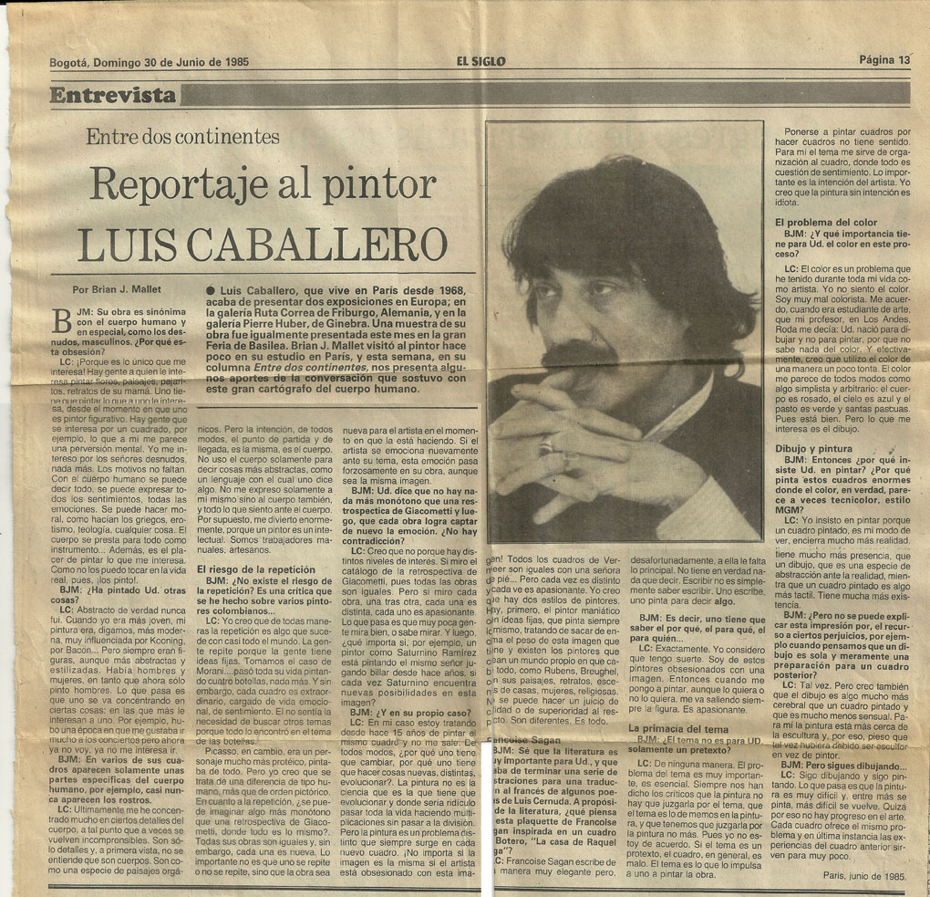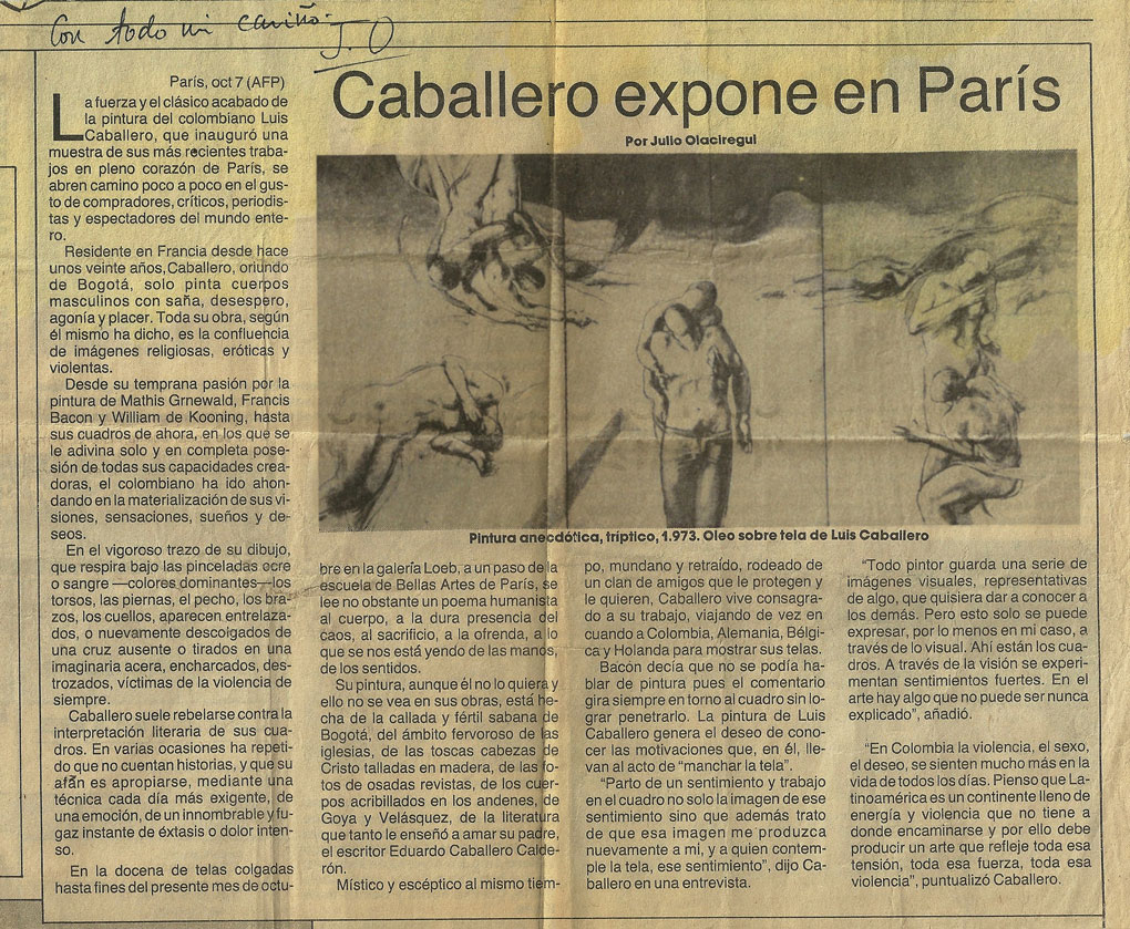 Artículo de prensa a propósito de la participación de Luís Caballero en la FIAC.