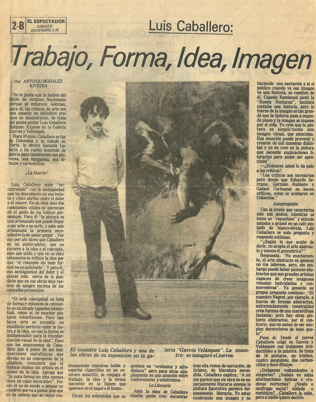 —Luis Caballero, catálogo de exposición, Galería Garcés Velásquez, Bogotá, 1991.