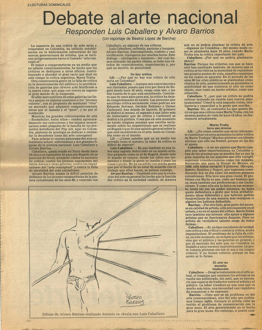 Luis Caballero en entrevista con José Hernández. Me tocó ser así. Galería Garcés Velásquez, Bogotá, 1986.