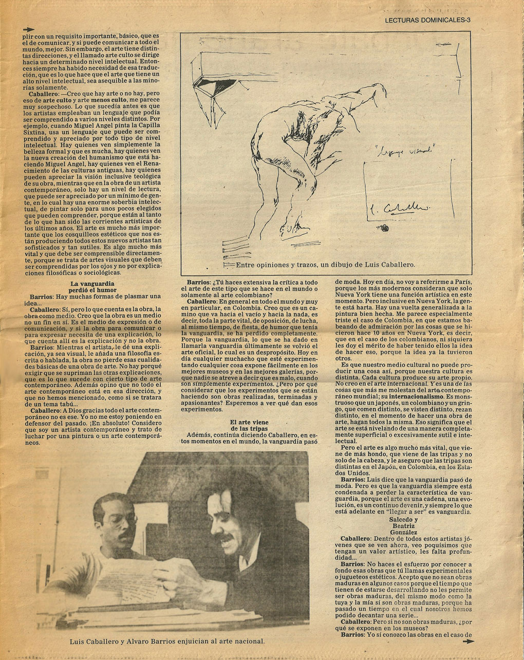 —Luis Caballero en entrevista con Marta Traba. "Diez preguntas de Marta Traba a Luis Caballero", catálogo de exposición, Museo de Arte Moderno de Bogotá, 1973.