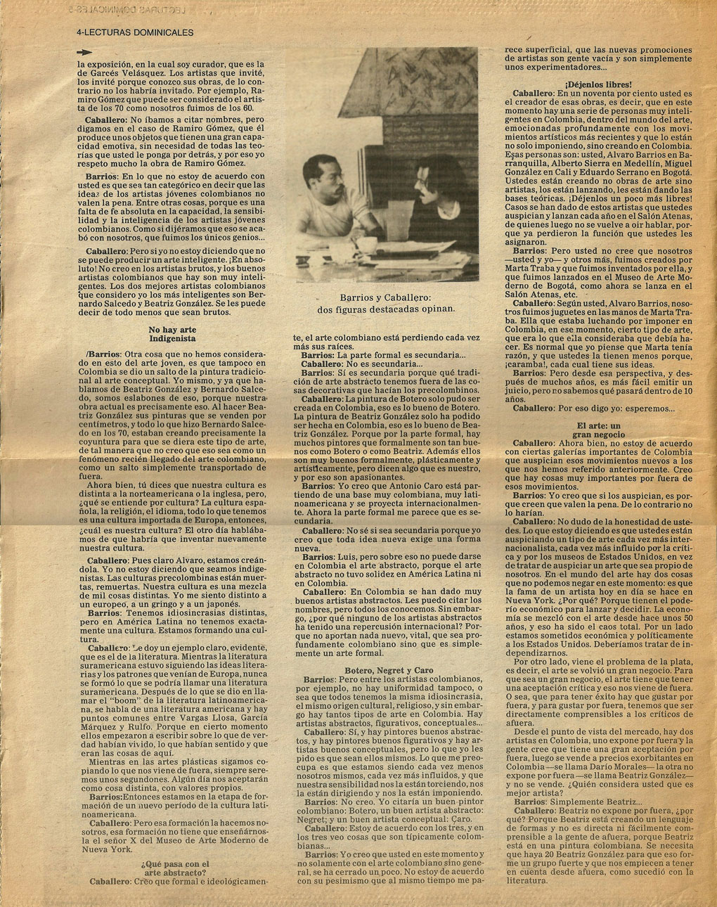 —Luis Caballero en entrevista con José Hernández. Me tocó ser así. Galería Garcés Velásquez, Bogotá, 1986.