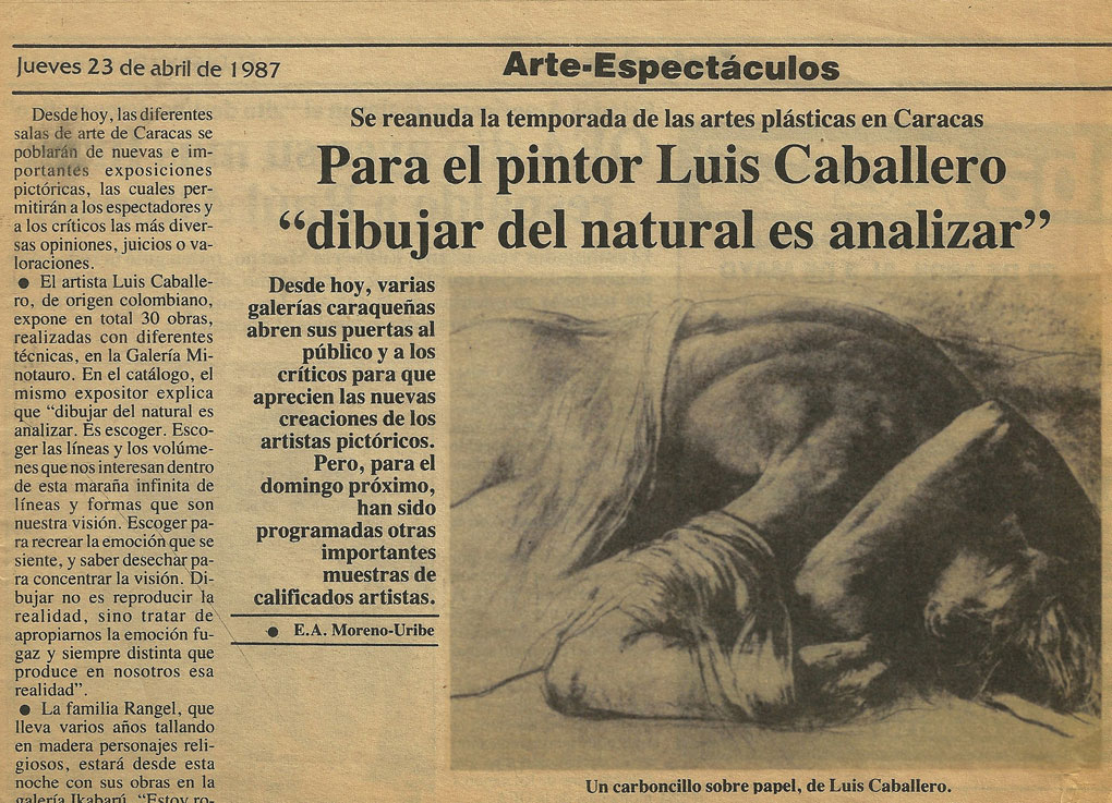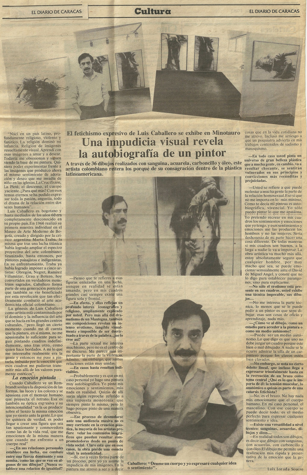 Artículo de prensa a propósito de la exposición de Luís Caballero en la Galería Minotauro, Caracas, Venezuela.