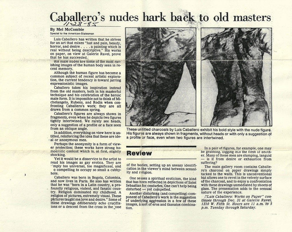 Artículo de prensa a propósito de la exposición de Luís Caballero en la Galería Ravel, Austin, TX, Estados Unidos.