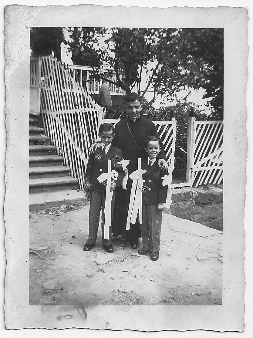 Familia Caballero Holguín y familia Boncenne Holguín con su pariente el sacerdote Camilo Torres.