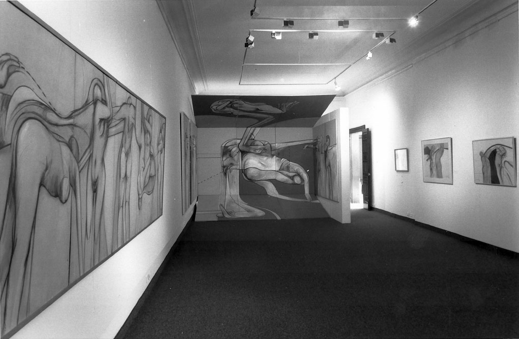 Su estancia en Europa le permite el contacto directo con la pintura moderna. La etapa inicial de su obra deja ver influencias de Dubuffet, De Kooning, Allen Jones y principalmente Francis Bacon.