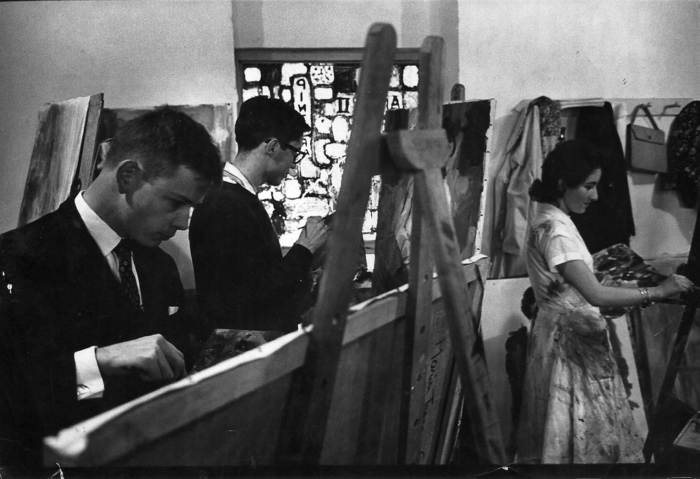 Camilo Calderón, Luis Caballero y Amparo Ramírez en los talleres de la Escuela de Bellas Artes de la Universidad de los Andes.