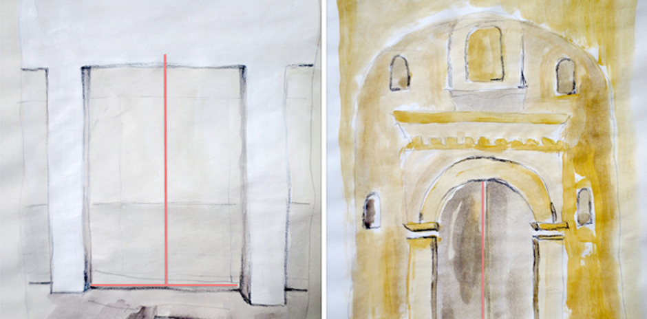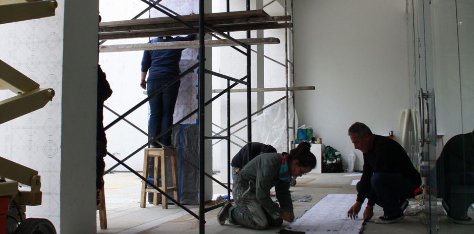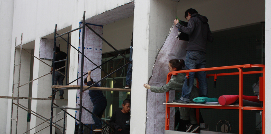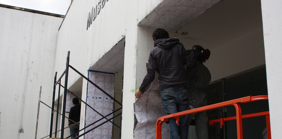 Me interesó el umbral ya que supone la interacción de dos espacios que se relacionan mediante otro intermedio que los separa. Busco que los visitantes del Museo se tornen en habitantes del umbral para reivindicar esa zona en donde no se toma camino ni para un lado ni para el otro y donde podemos estar sin decidir. En mi obra el no decidir también supone una decisión y la utilizo para cuestionar los opuestos: adentro y afuera, lleno y vacío. Para ello decidí tomar ornamentos seductores de la iglesia y ubicarlos en los ocho umbrales de entrada al Museo de Arte con el fin de que el caminante no pase de un mundo al otro, sino que se quede habitando ese espacio".